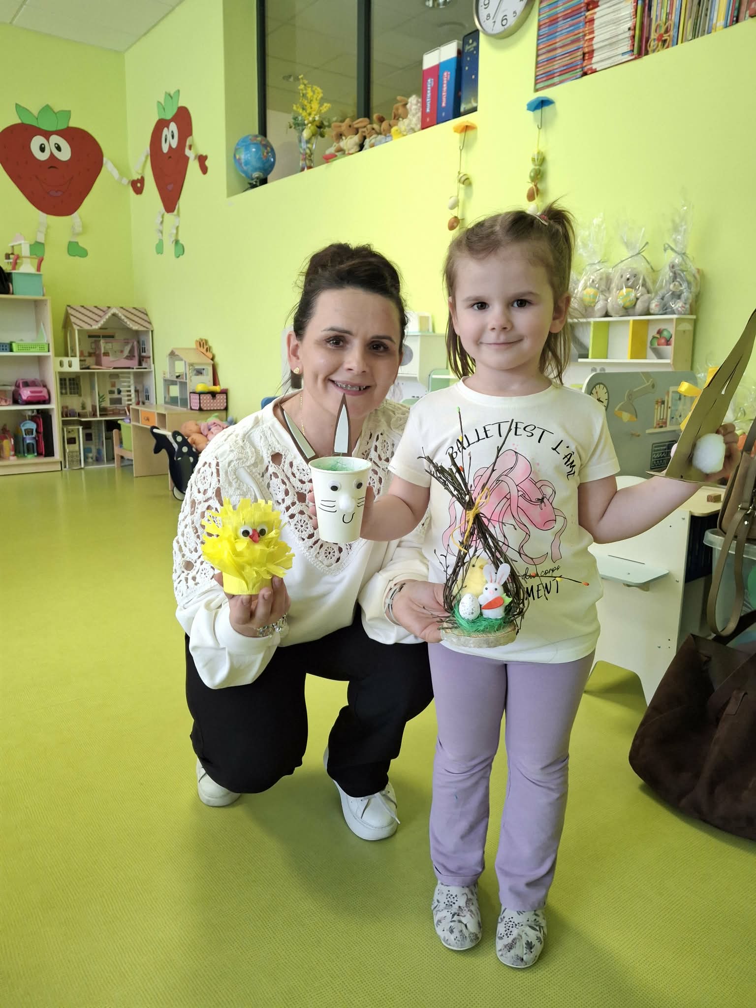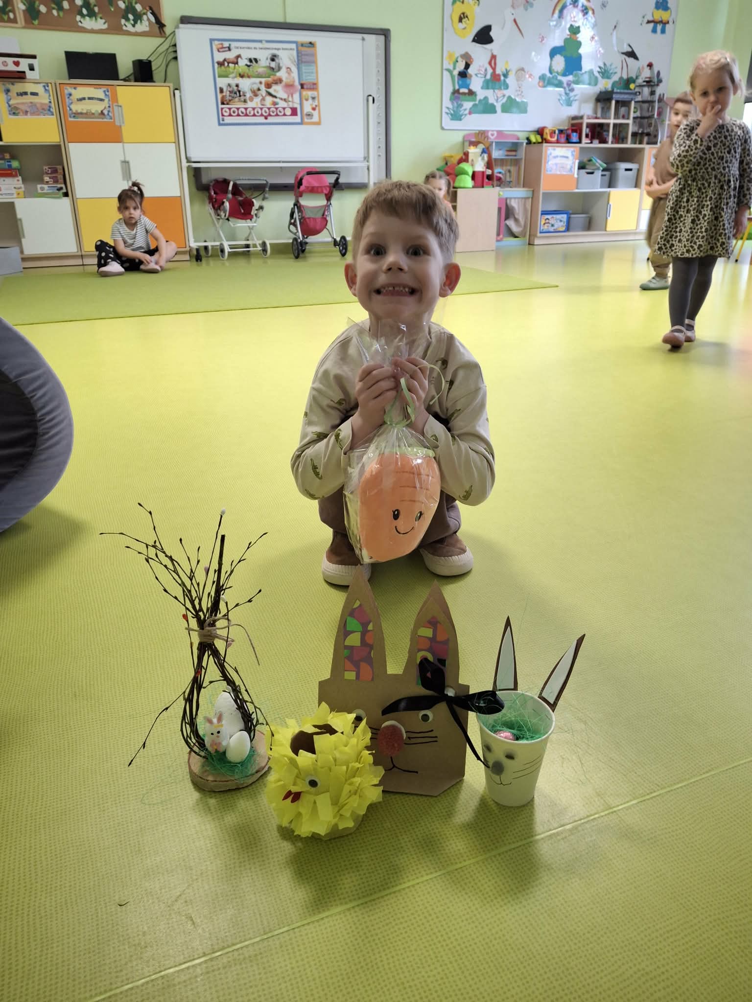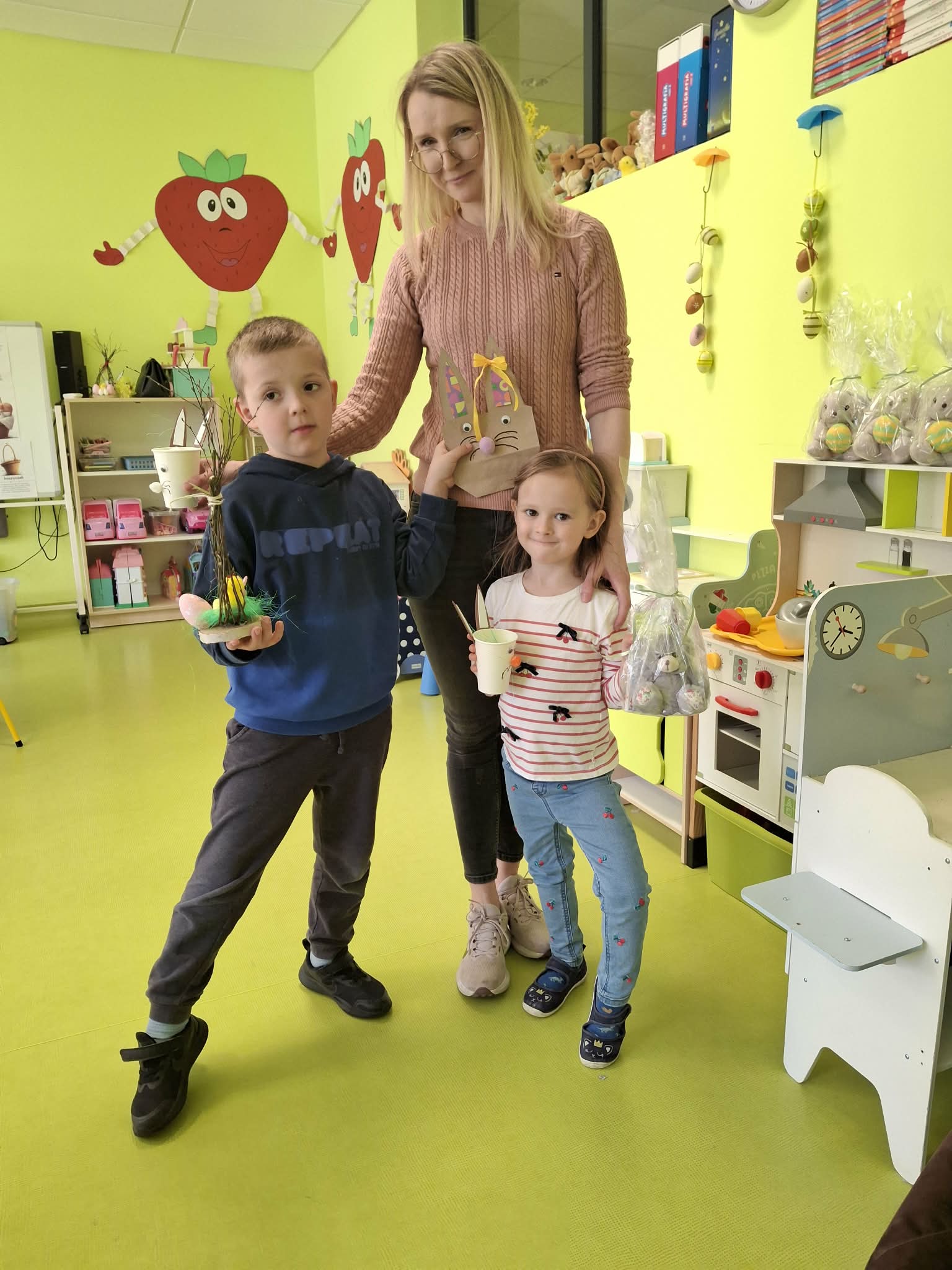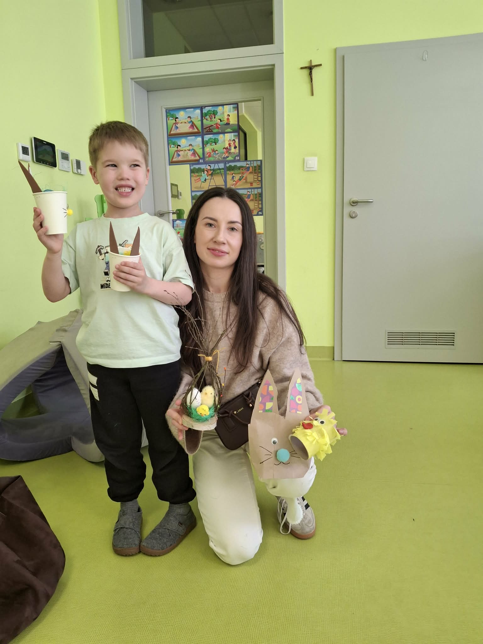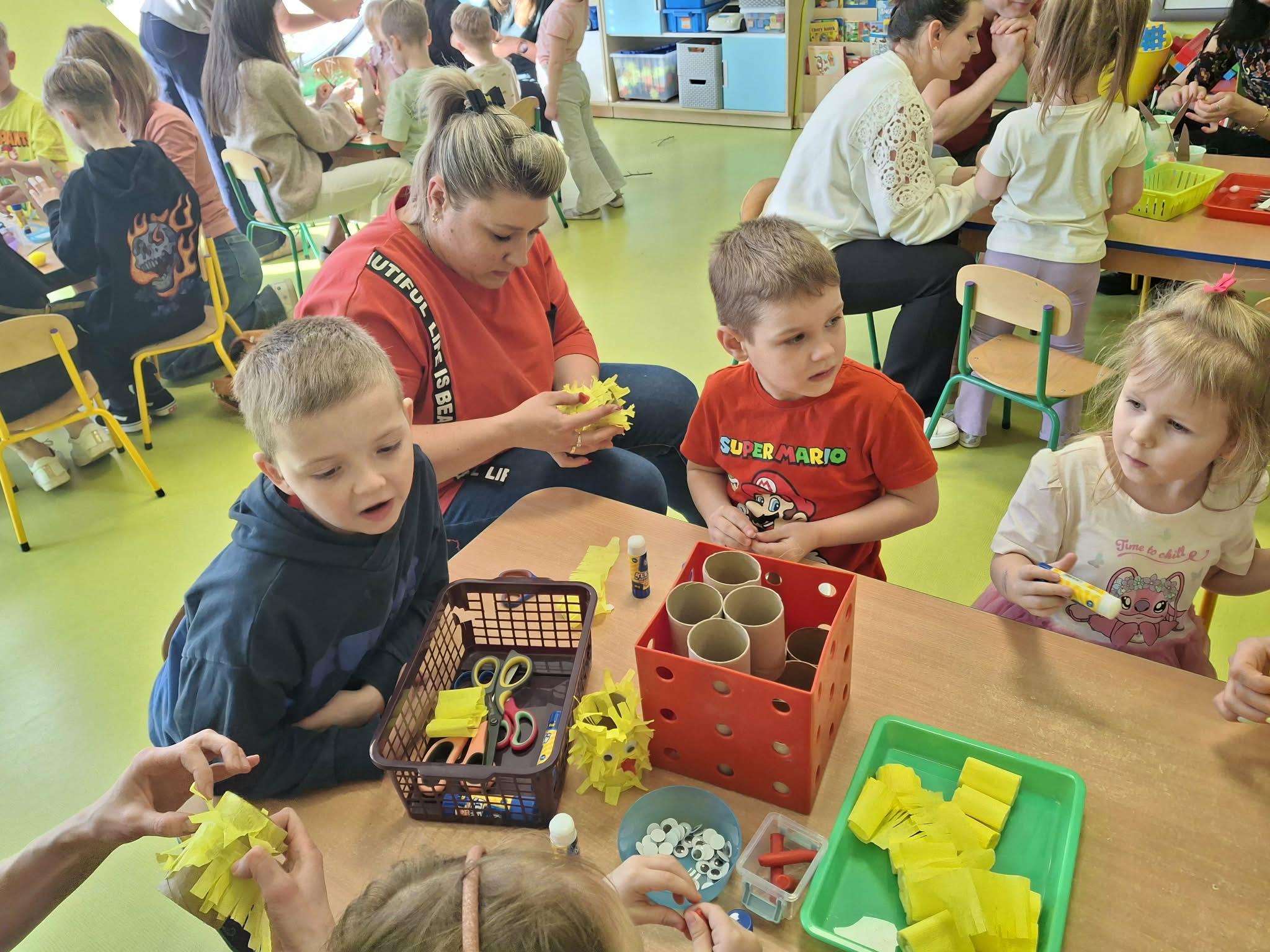 Wielkanocne spotkanie z rodzicami to frajda dla wszystkich. Dzisiaj na warsztatach robiliśmy przepiękne ozdoby - torebkę prezentową, kurczaka, zajączka z papierowego kubeczka i wielkanocny stroik. Zadań było dużo, ale uporaliśmy się z nimi doskonale. Efekty naszej wspólnej pracy widać na zdjęciach.