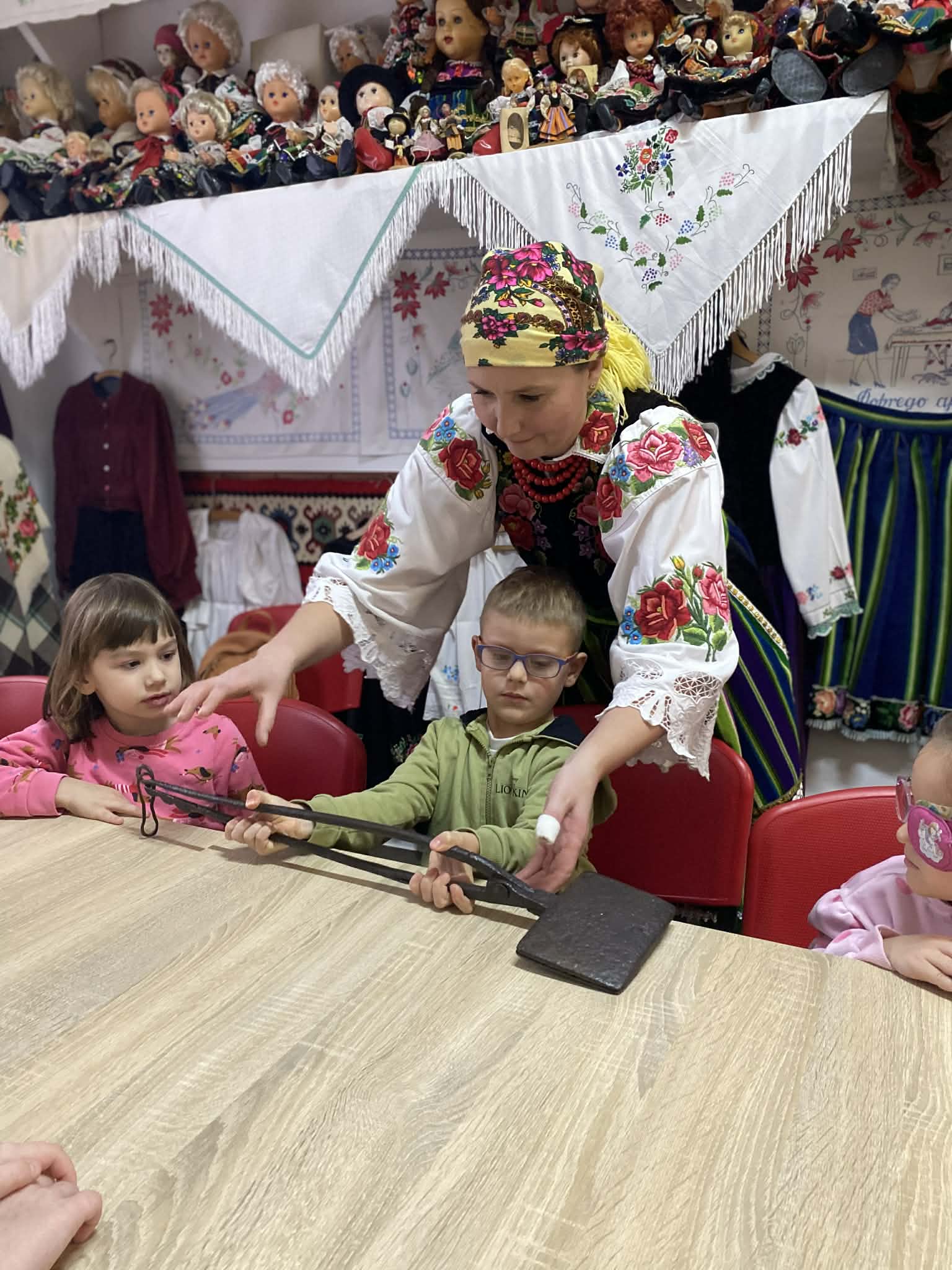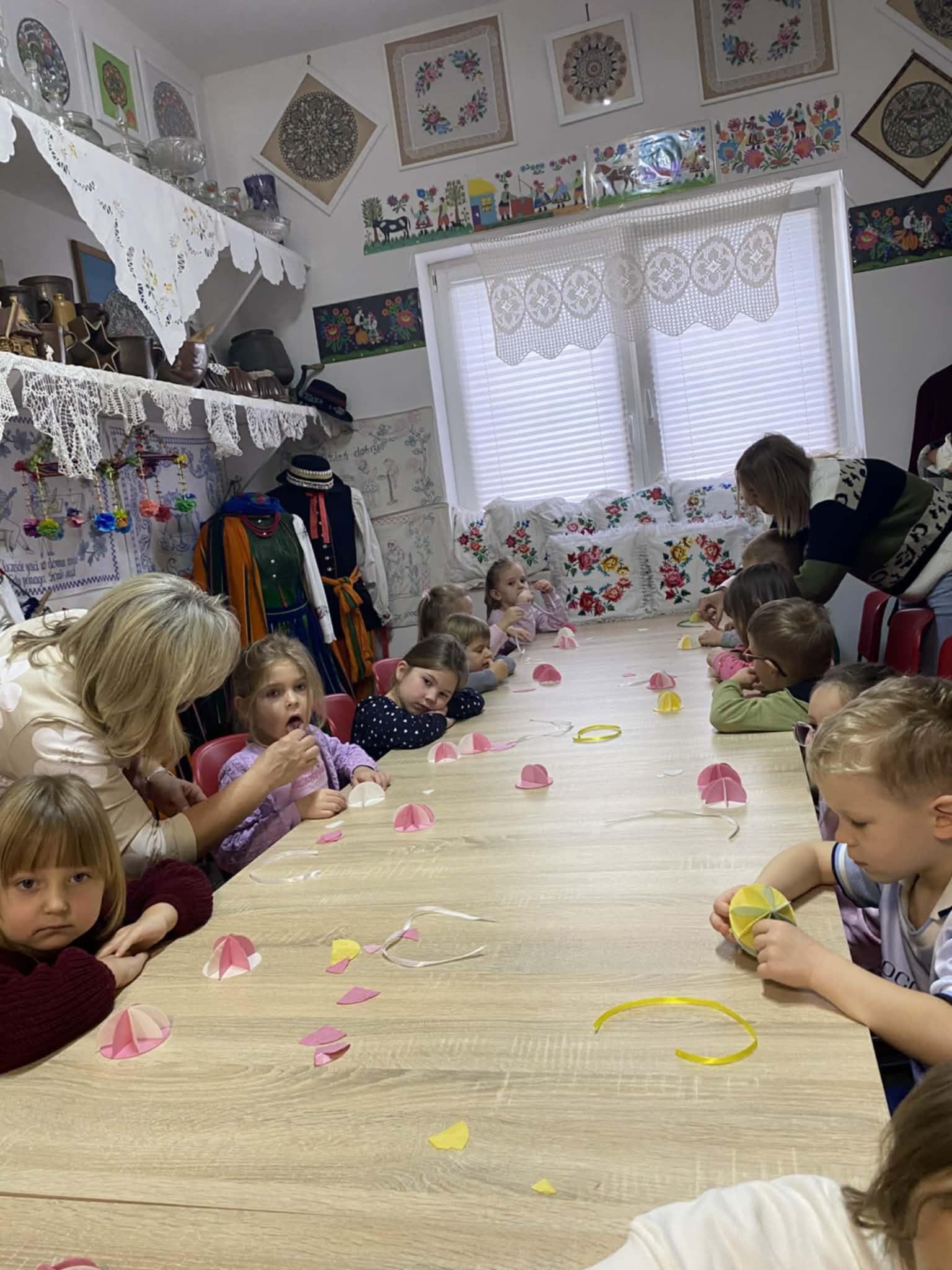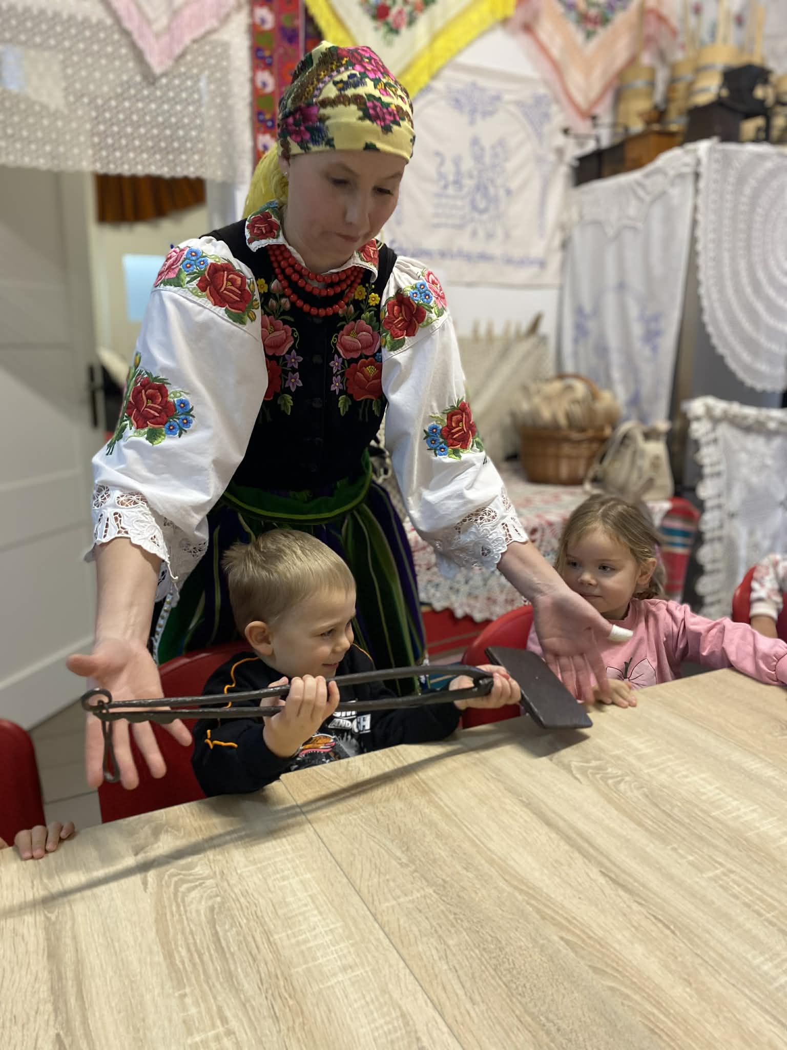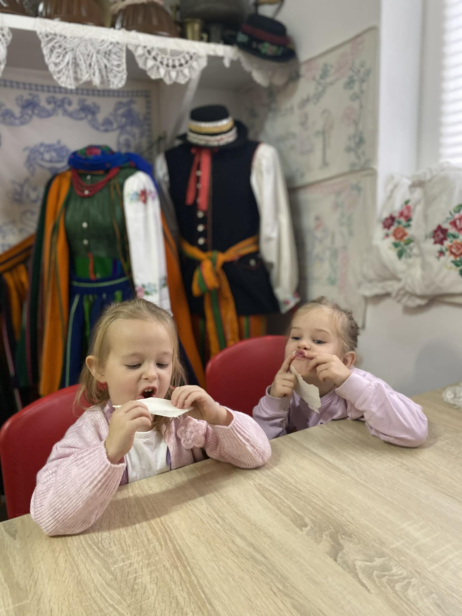 Dzisiejszego dnia udaliśmy się na wycieczkę do Zagrody Bednarza. Wspaniałe miejsce. Naszym głównym celem było poznanie tradycji bożonarodzeniowych dawnego Księstwa Łowickiego. Najpierw Pan opowiedział nam o przygotowaniach do świąt w dawnych czasach. Dzieci samodzielnie wykonały łańcuchy z opłatka i słomy. Następnie Pani pokazała nam jak wypiekano opłatek, mogliśmy spróbować a nawet najeść się do syta. Każde dziecko samodzielnie ale zgodnie z instrukcją wykonało bombkę z opłatka. Wszystkie ozdoby zabraliśmy do domu i będą ozdabiać nasze choinki.