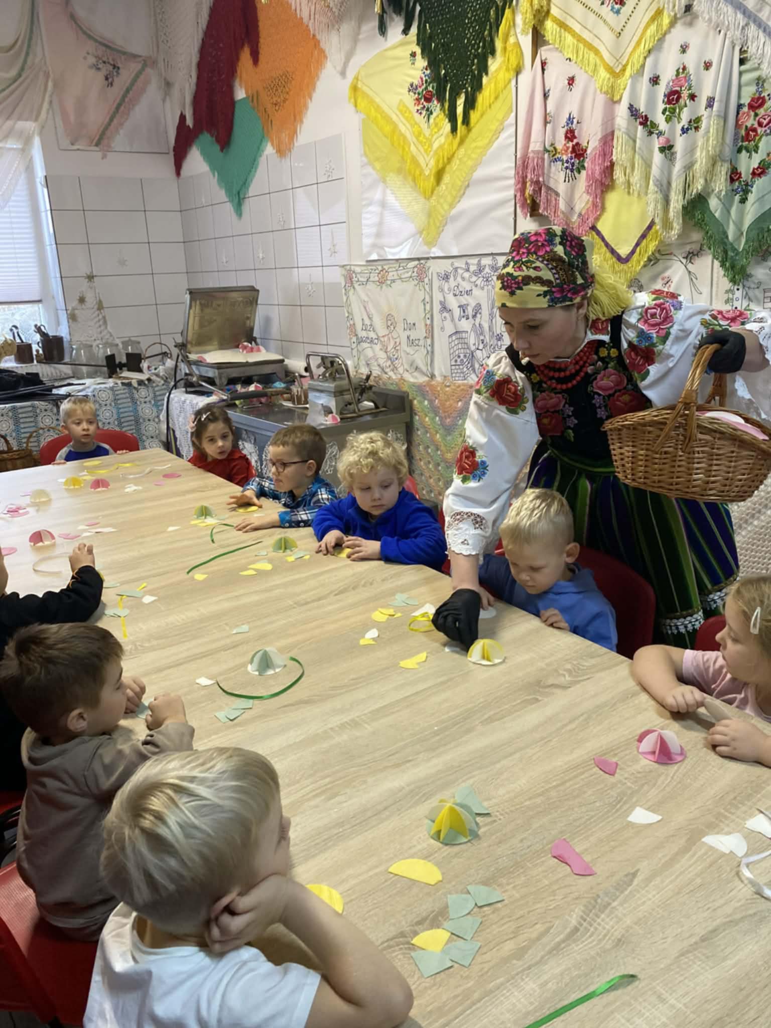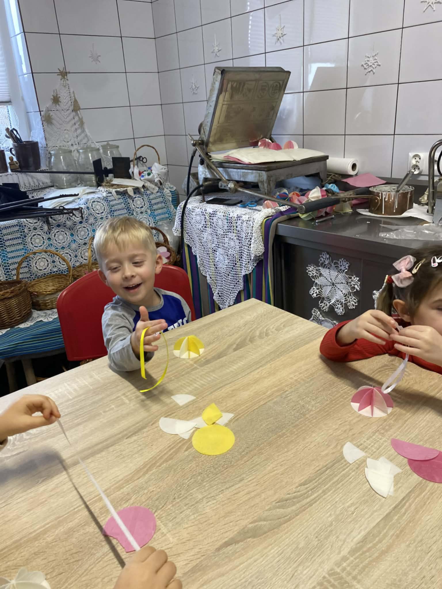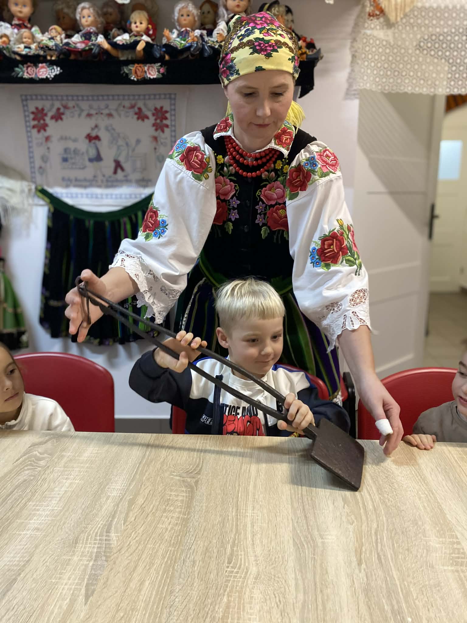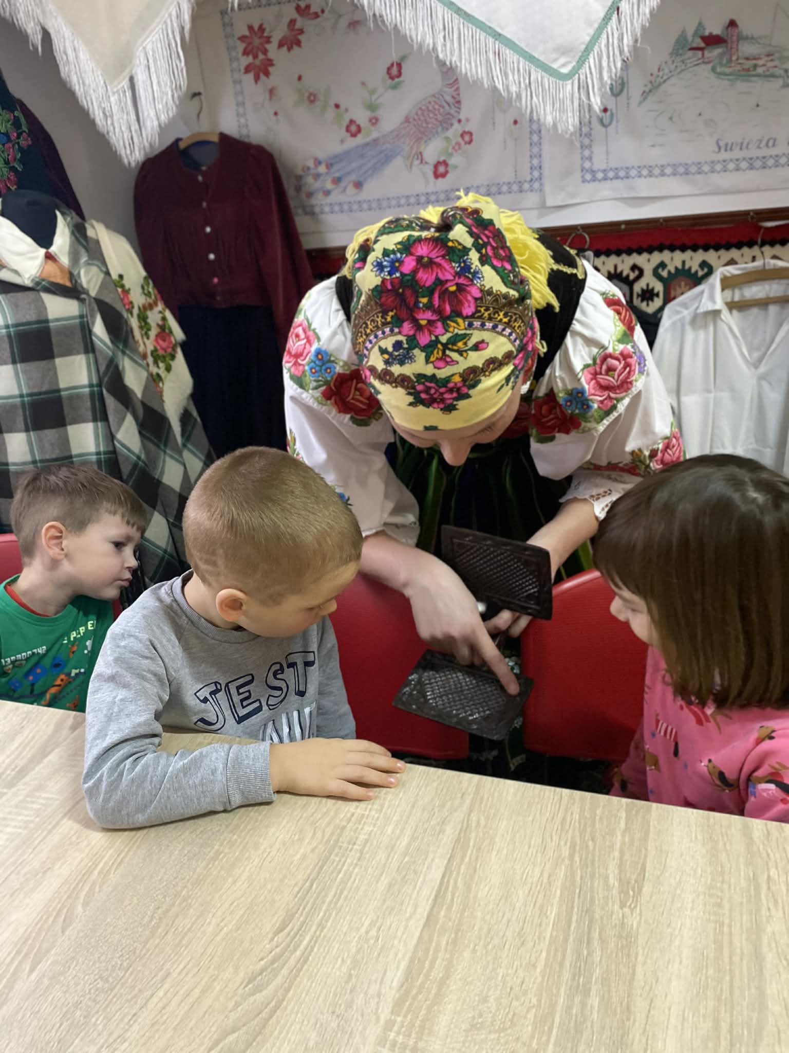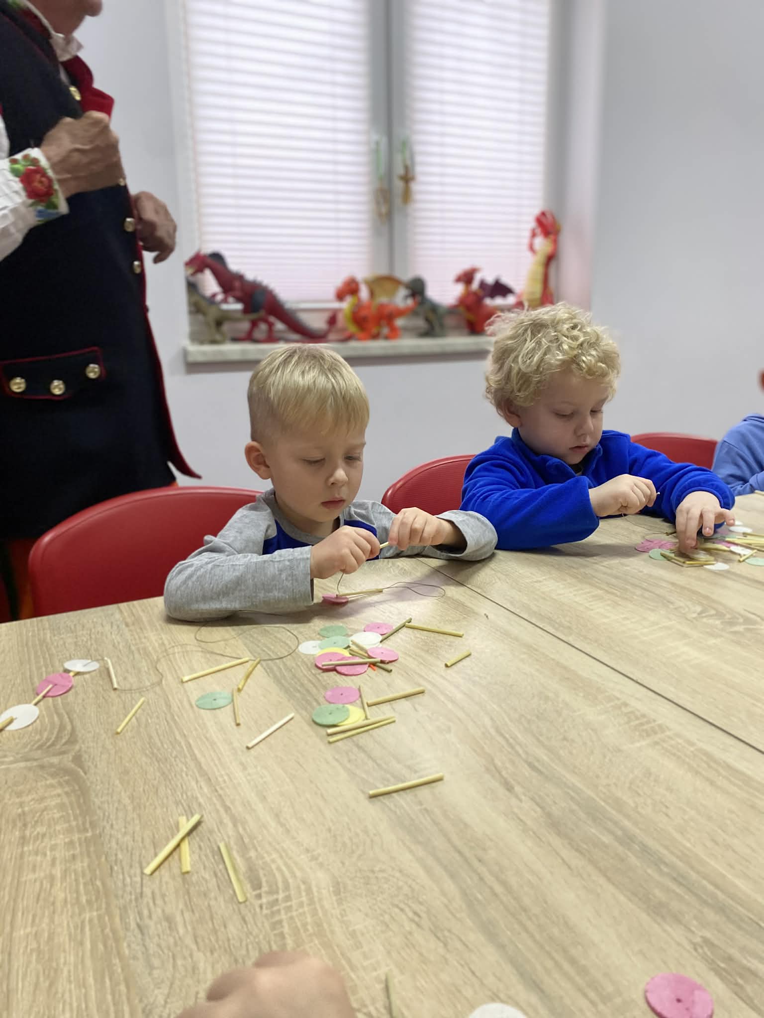 Dzisiejszego dnia udaliśmy się na wycieczkę do Zagrody Bednarza. Wspaniałe miejsce. Naszym głównym celem było poznanie tradycji bożonarodzeniowych dawnego Księstwa Łowickiego. Najpierw Pan opowiedział nam o przygotowaniach do świąt w dawnych czasach. Dzieci samodzielnie wykonały łańcuchy z opłatka i słomy. Następnie Pani pokazała nam jak wypiekano opłatek, mogliśmy spróbować a nawet najeść się do syta. Każde dziecko samodzielnie ale zgodnie z instrukcją wykonało bombkę z opłatka. Wszystkie ozdoby zabraliśmy do domu i będą ozdabiać nasze choinki.