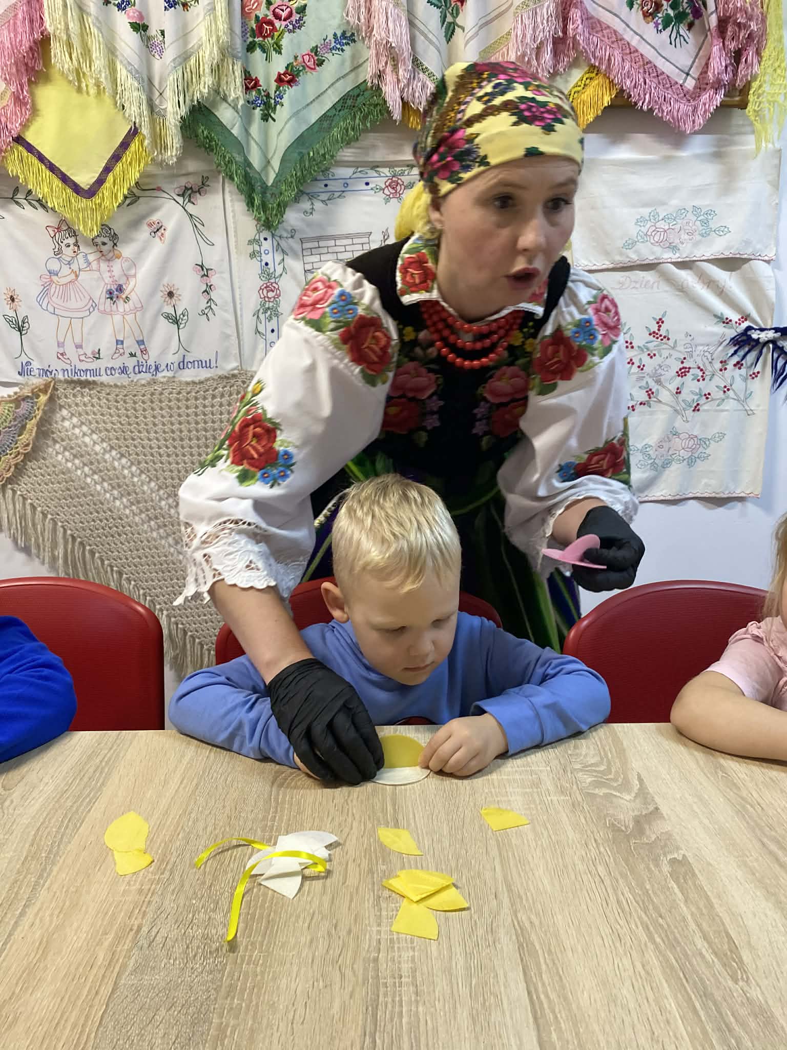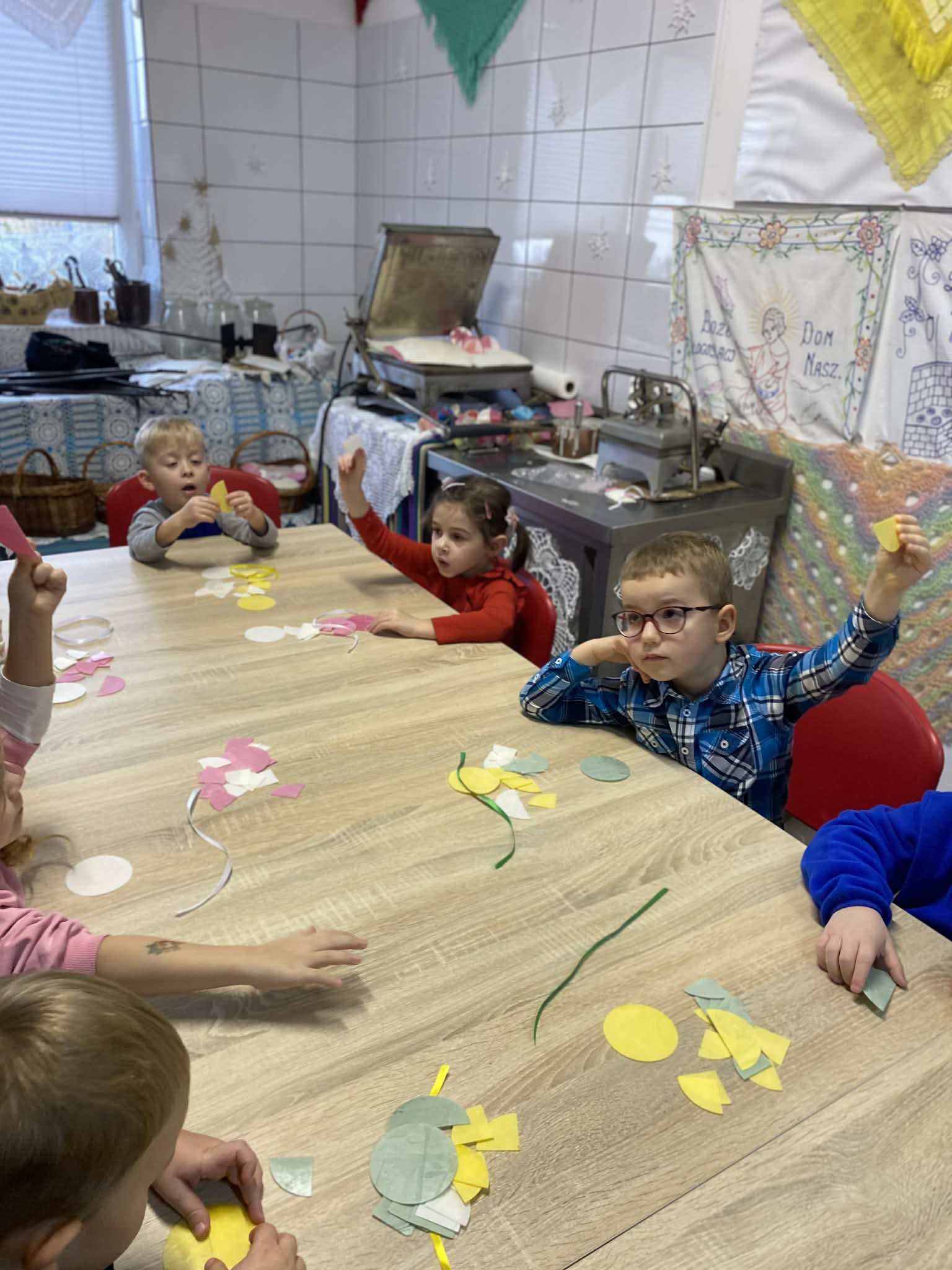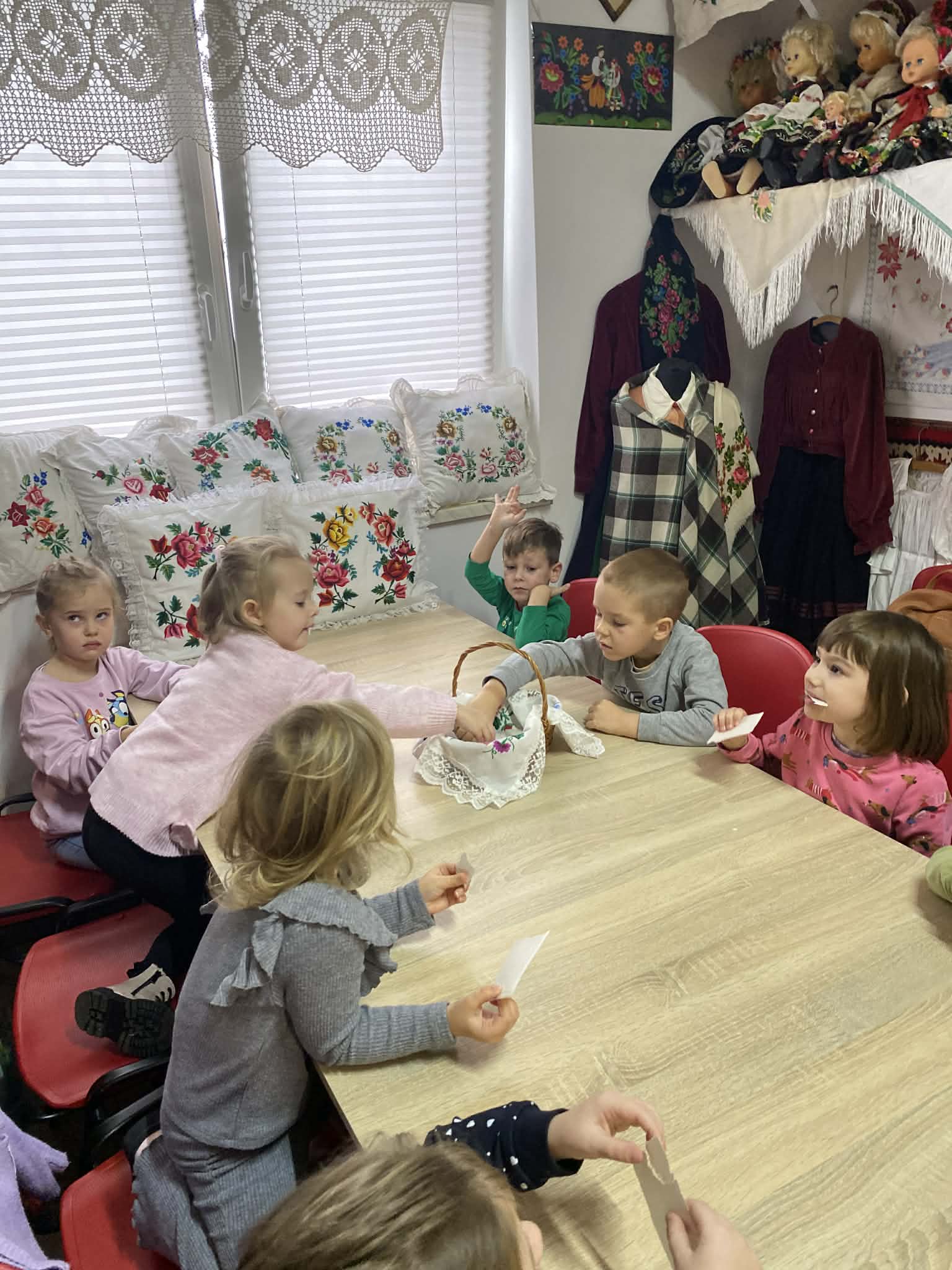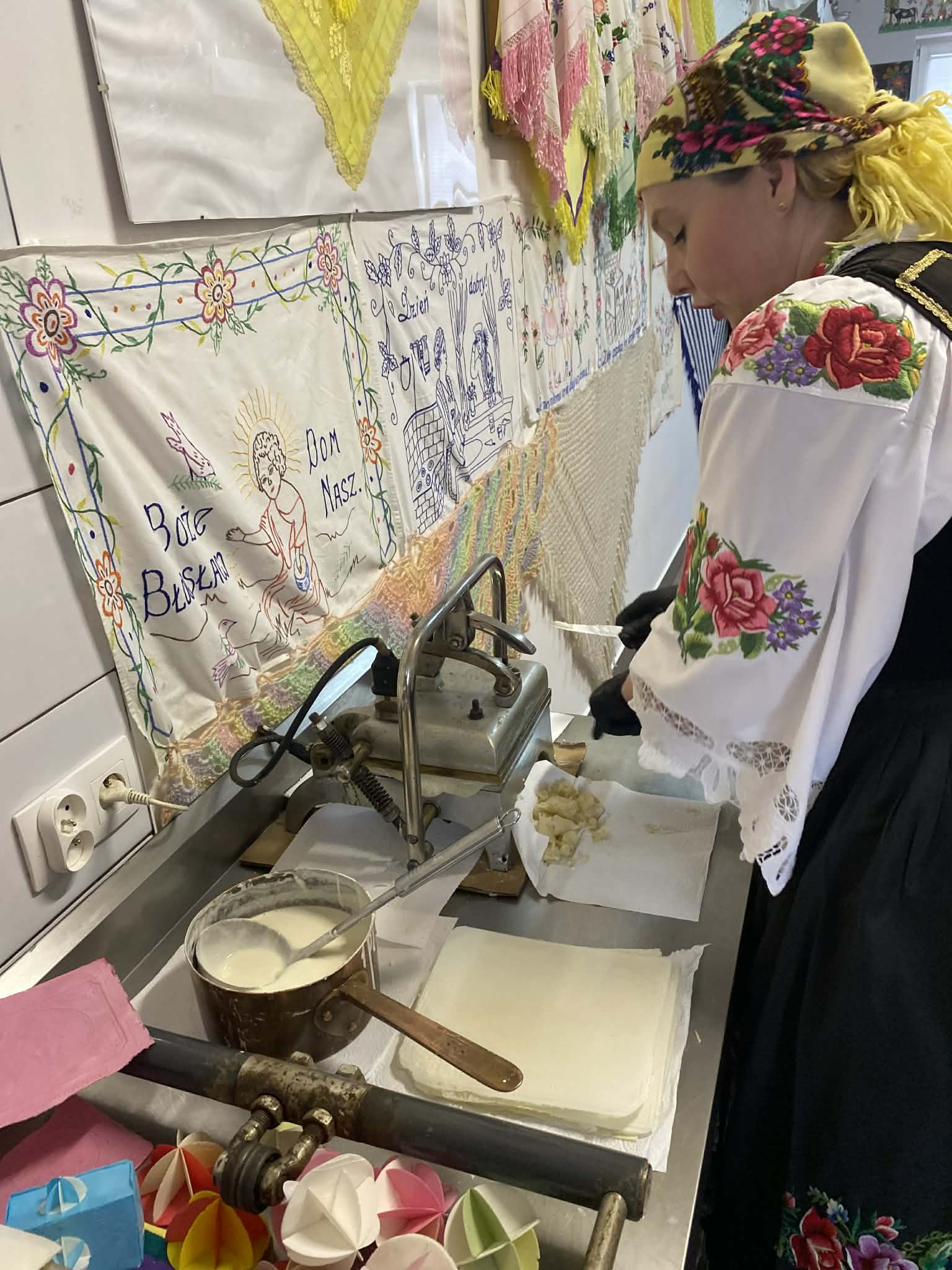 Dzisiejszego dnia udaliśmy się na wycieczkę do Zagrody Bednarza. Wspaniałe miejsce. Naszym głównym celem było poznanie tradycji bożonarodzeniowych dawnego Księstwa Łowickiego. Najpierw Pan opowiedział nam o przygotowaniach do świąt w dawnych czasach. Dzieci samodzielnie wykonały łańcuchy z opłatka i słomy. Następnie Pani pokazała nam jak wypiekano opłatek, mogliśmy spróbować a nawet najeść się do syta. Każde dziecko samodzielnie ale zgodnie z instrukcją wykonało bombkę z opłatka. Wszystkie ozdoby zabraliśmy do domu i będą ozdabiać nasze choinki.