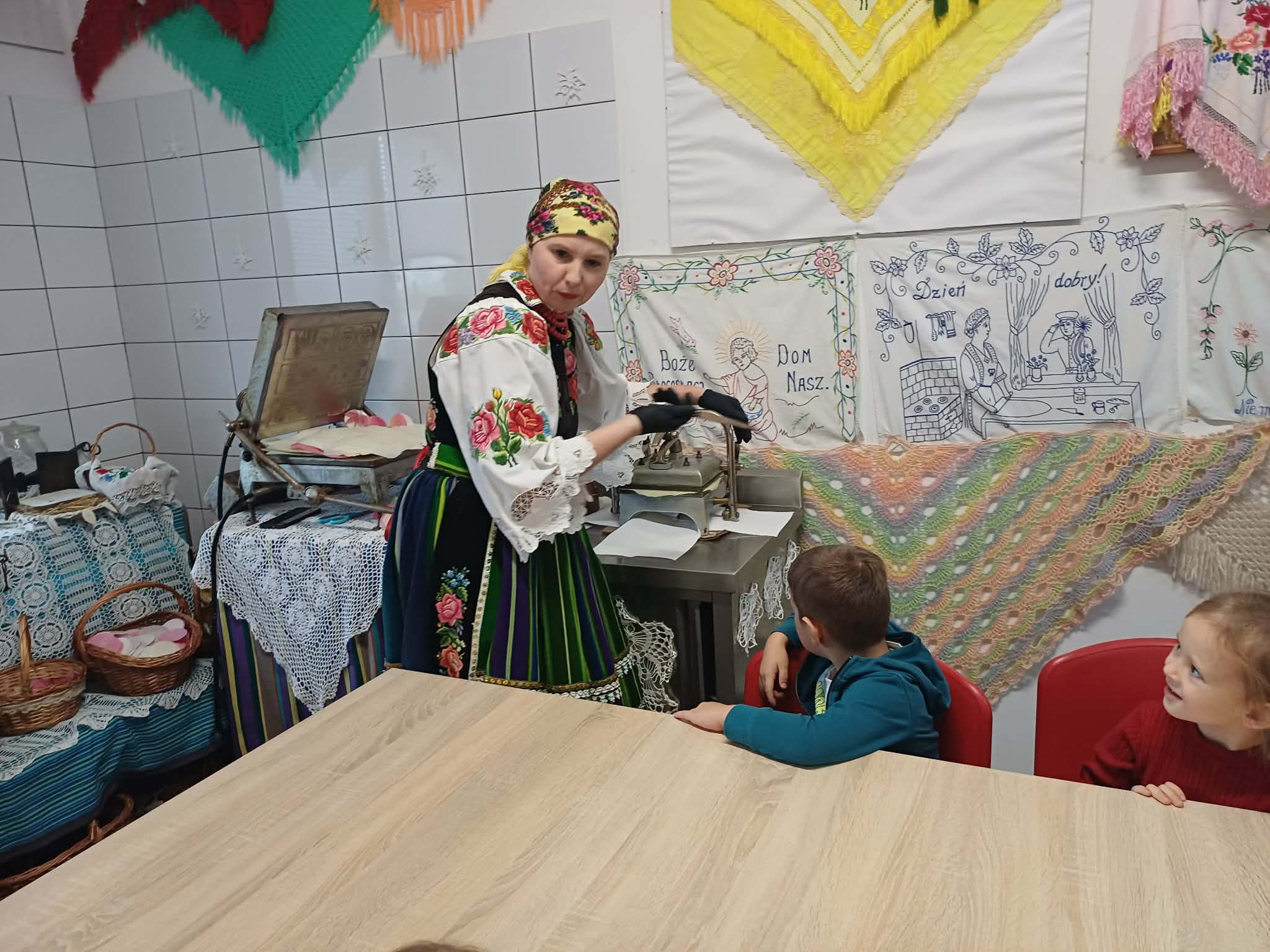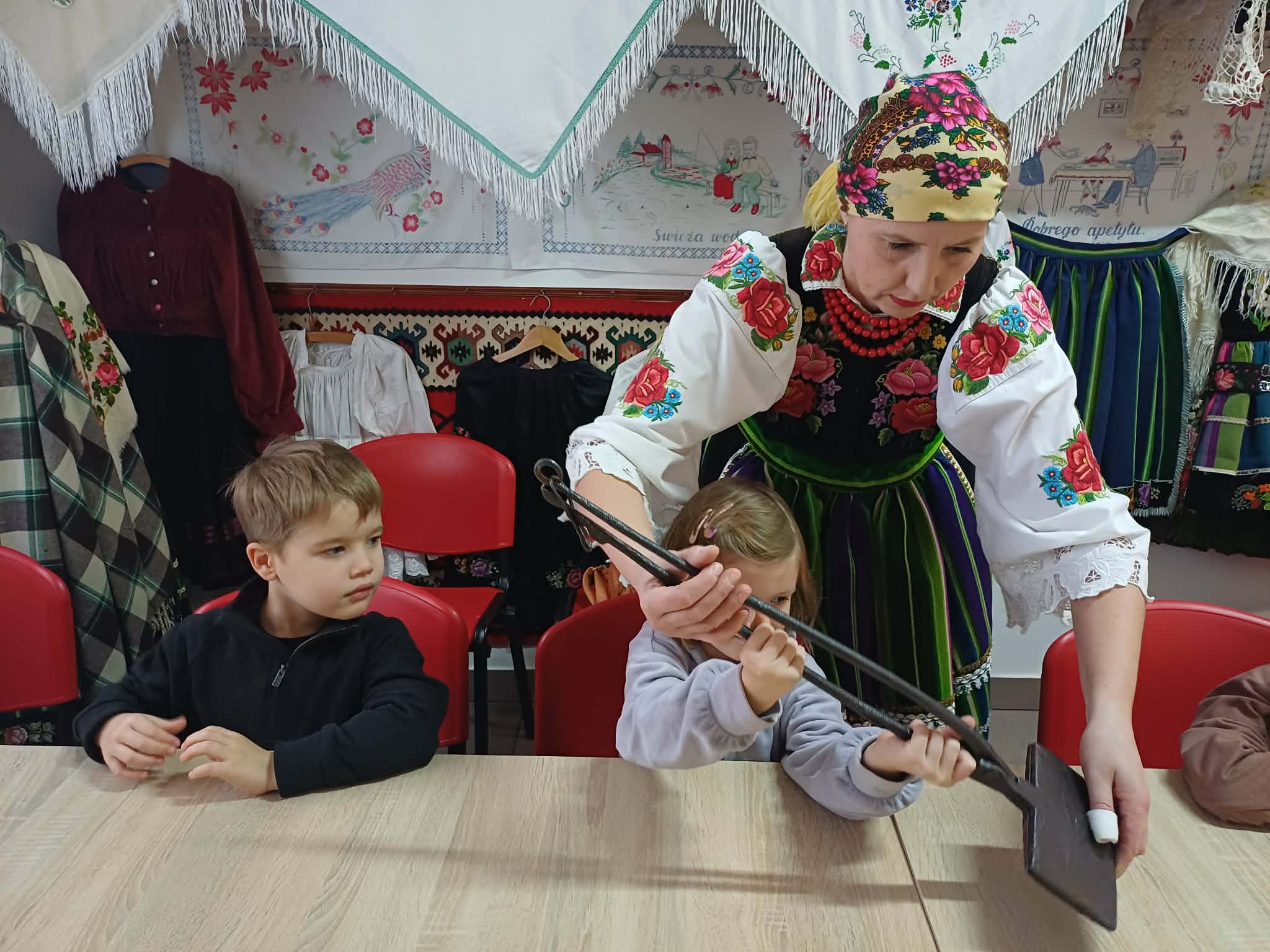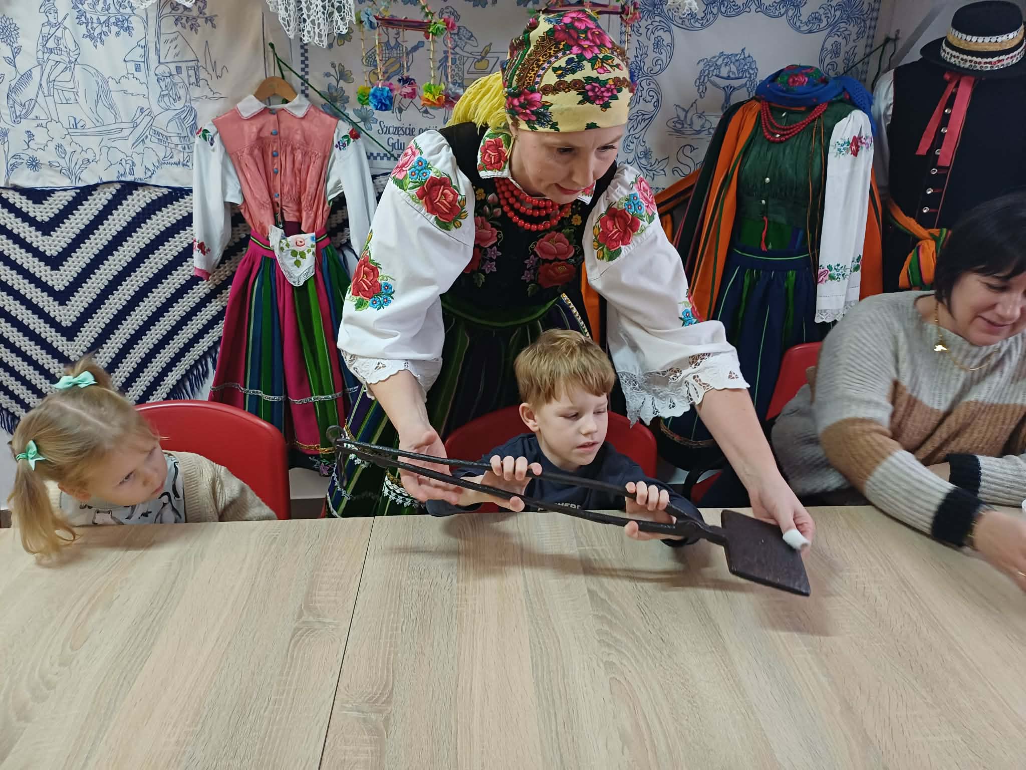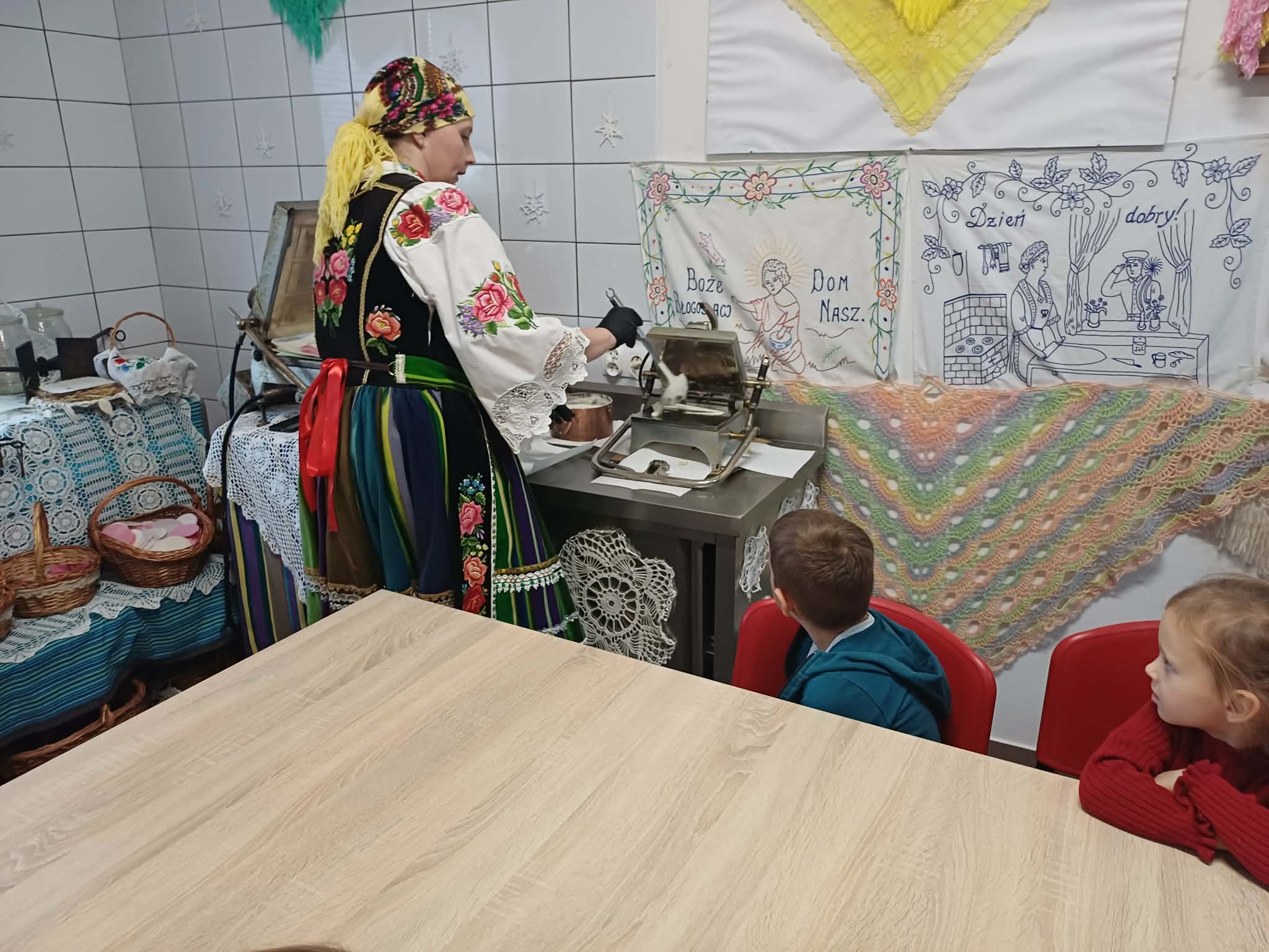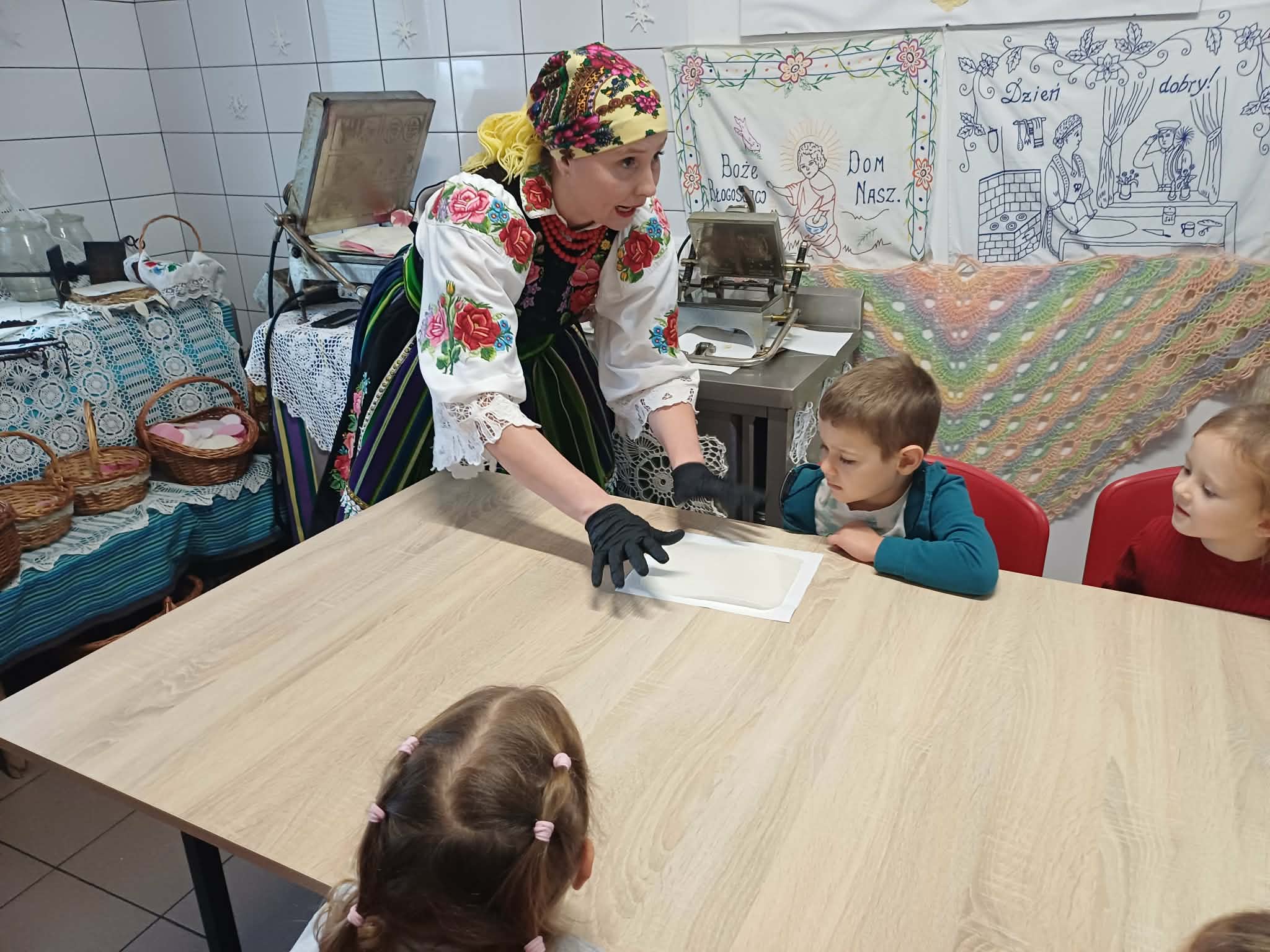 Dzisiaj odwiedziliśmy Zagrodę Bednarza w Bednarach. Wysłuchaliśmy opowieści o zwyczajach i tradycjach bożonarodzeniowych kultywowanych na Ziemi Łowickiej, zobaczyliśmy tradycyjny wyrób i wypiek opłatka wigilijnego na starej matrycy. Opłatek mogliśmy oczywiście spróbować. Później robiliśmy ozdoby świąteczne - bombkę z opłatka oraz łańcuch z opłatka i słomy. Wykonane ozdoby oczywiście będą wisiały na naszych domowych choinkach.
