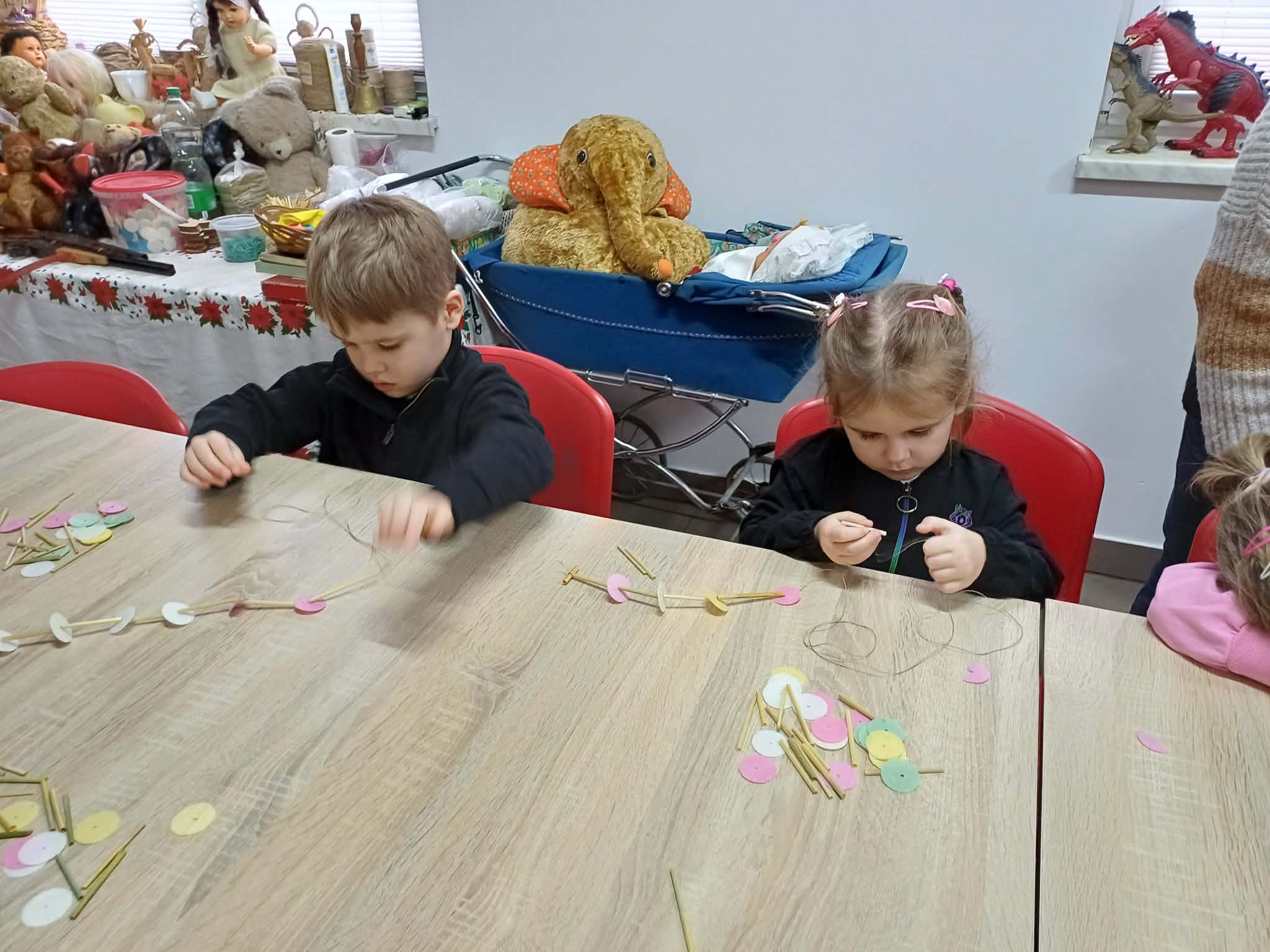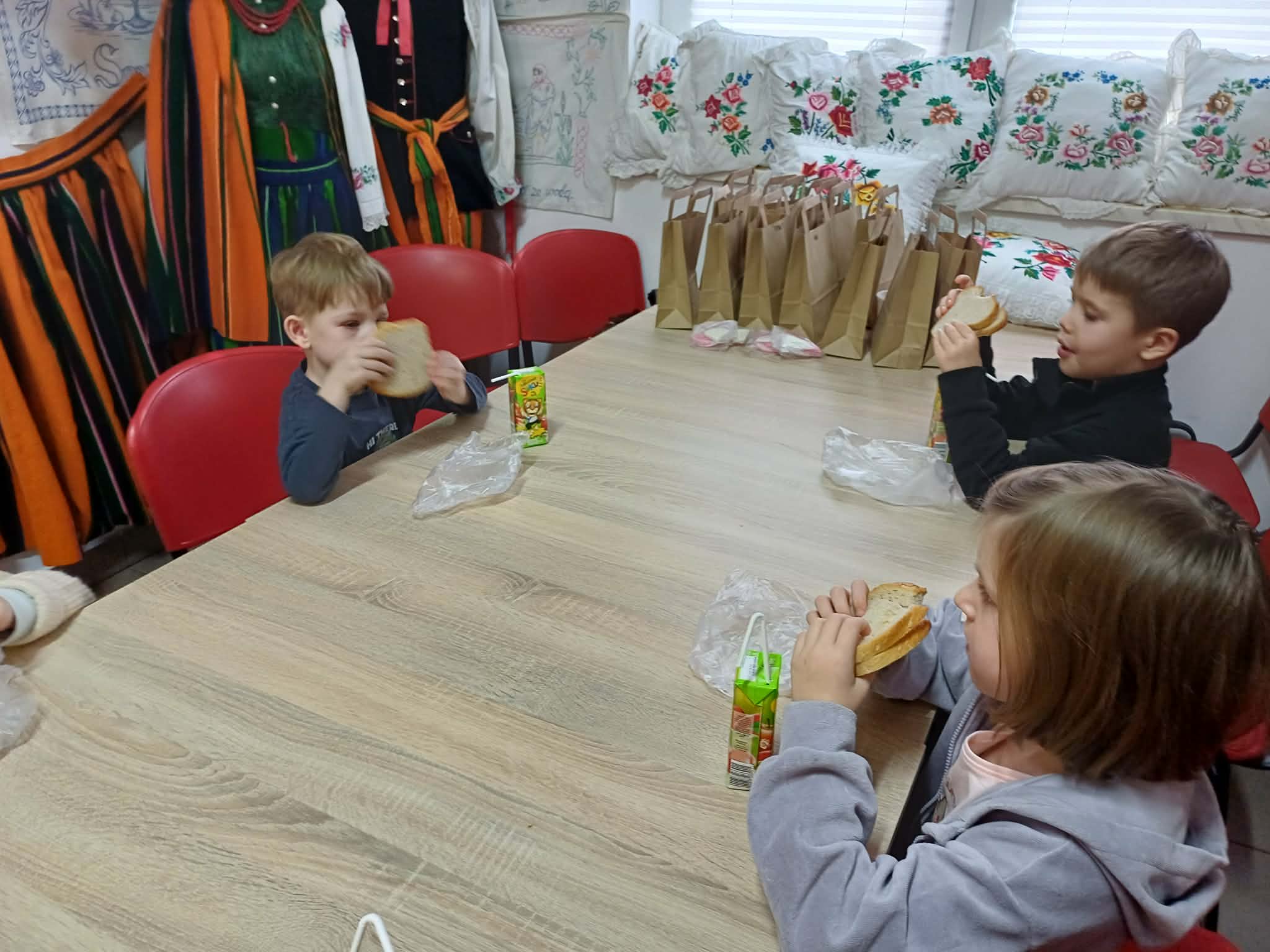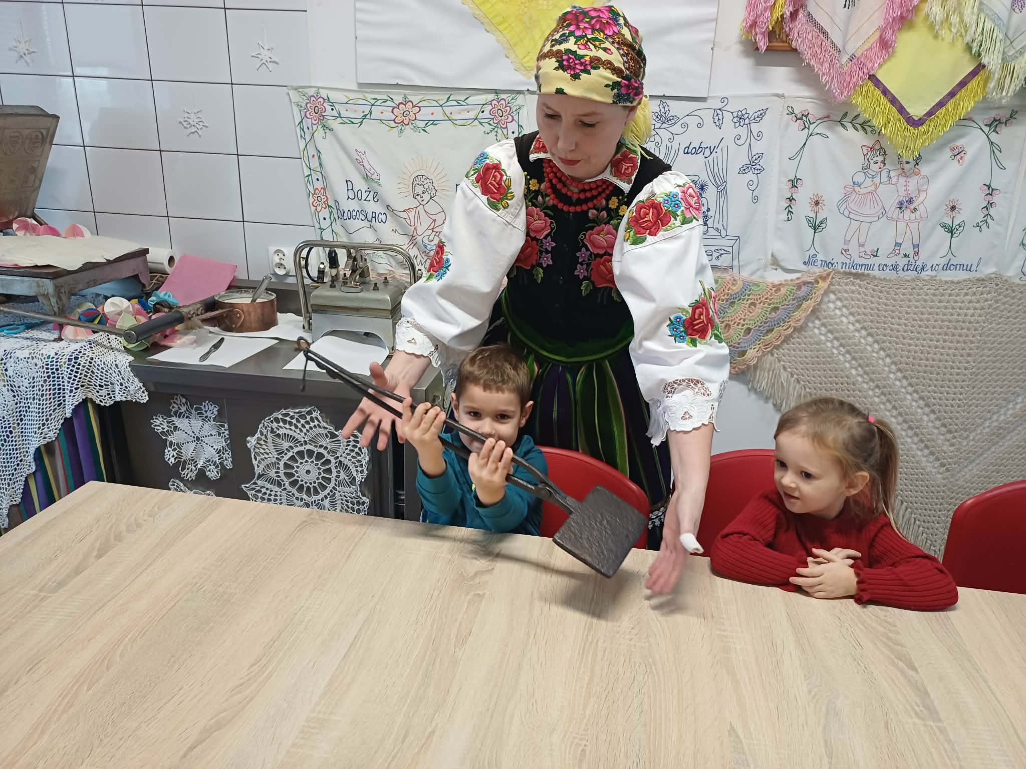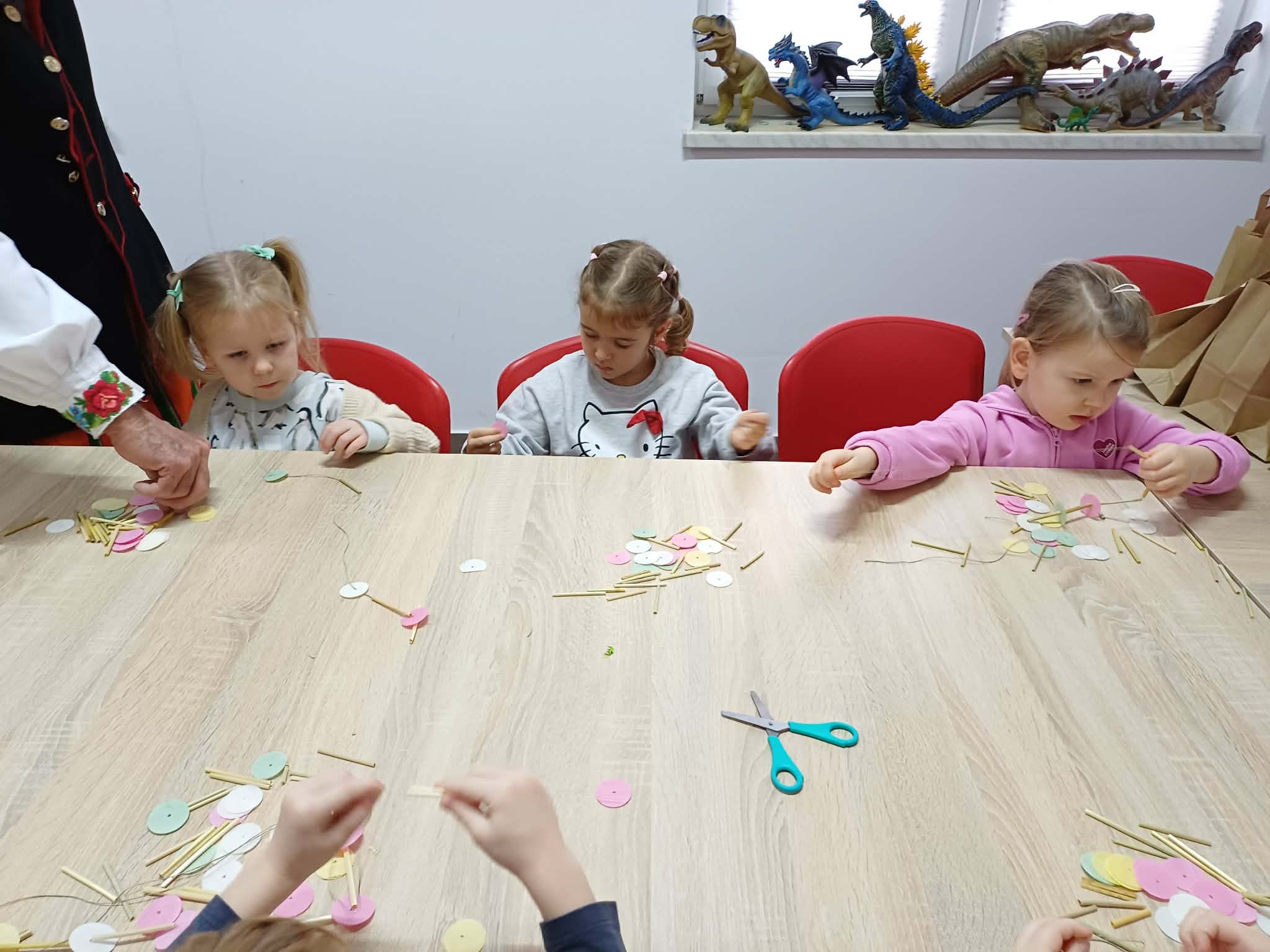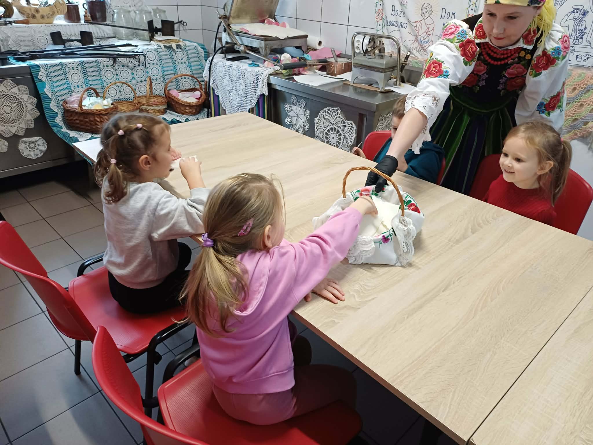 Dzisiaj odwiedziliśmy Zagrodę Bednarza w Bednarach. Wysłuchaliśmy opowieści o zwyczajach i tradycjach bożonarodzeniowych kultywowanych na Ziemi Łowickiej, zobaczyliśmy tradycyjny wyrób i wypiek opłatka wigilijnego na starej matrycy. Opłatek mogliśmy oczywiście spróbować. Później robiliśmy ozdoby świąteczne - bombkę z opłatka oraz łańcuch z opłatka i słomy. Wykonane ozdoby oczywiście będą wisiały na naszych domowych choinkach.