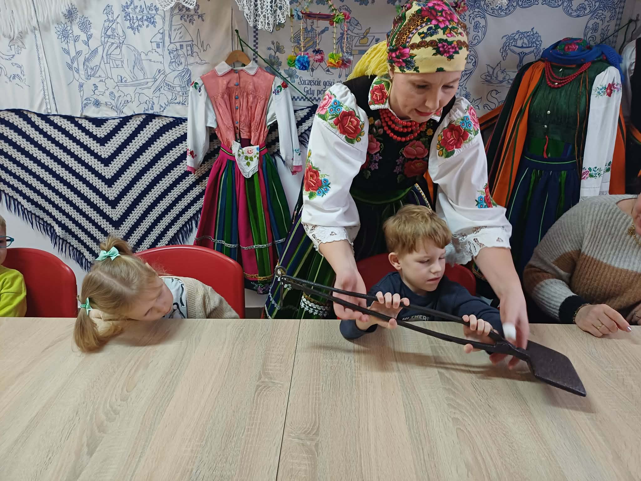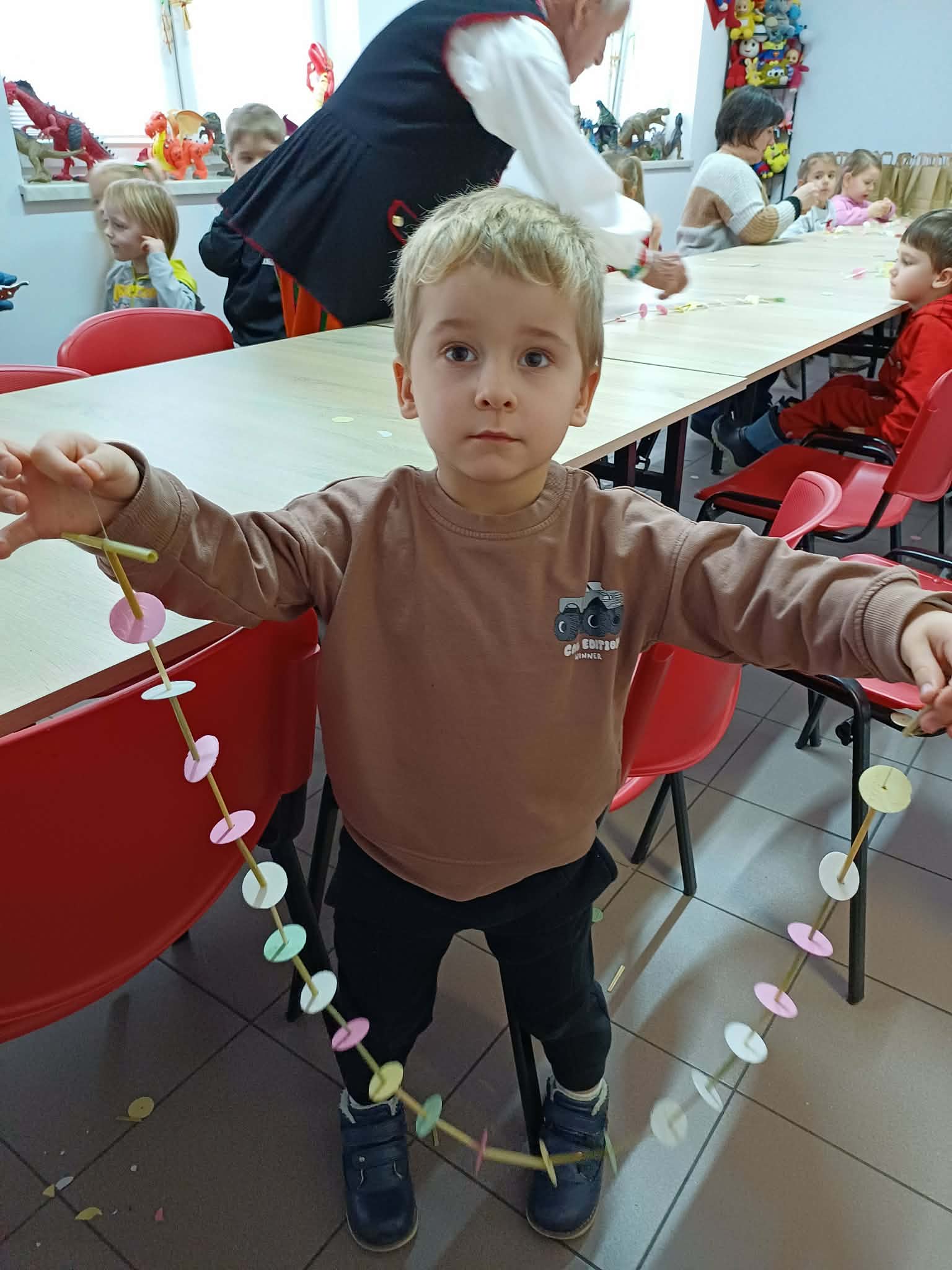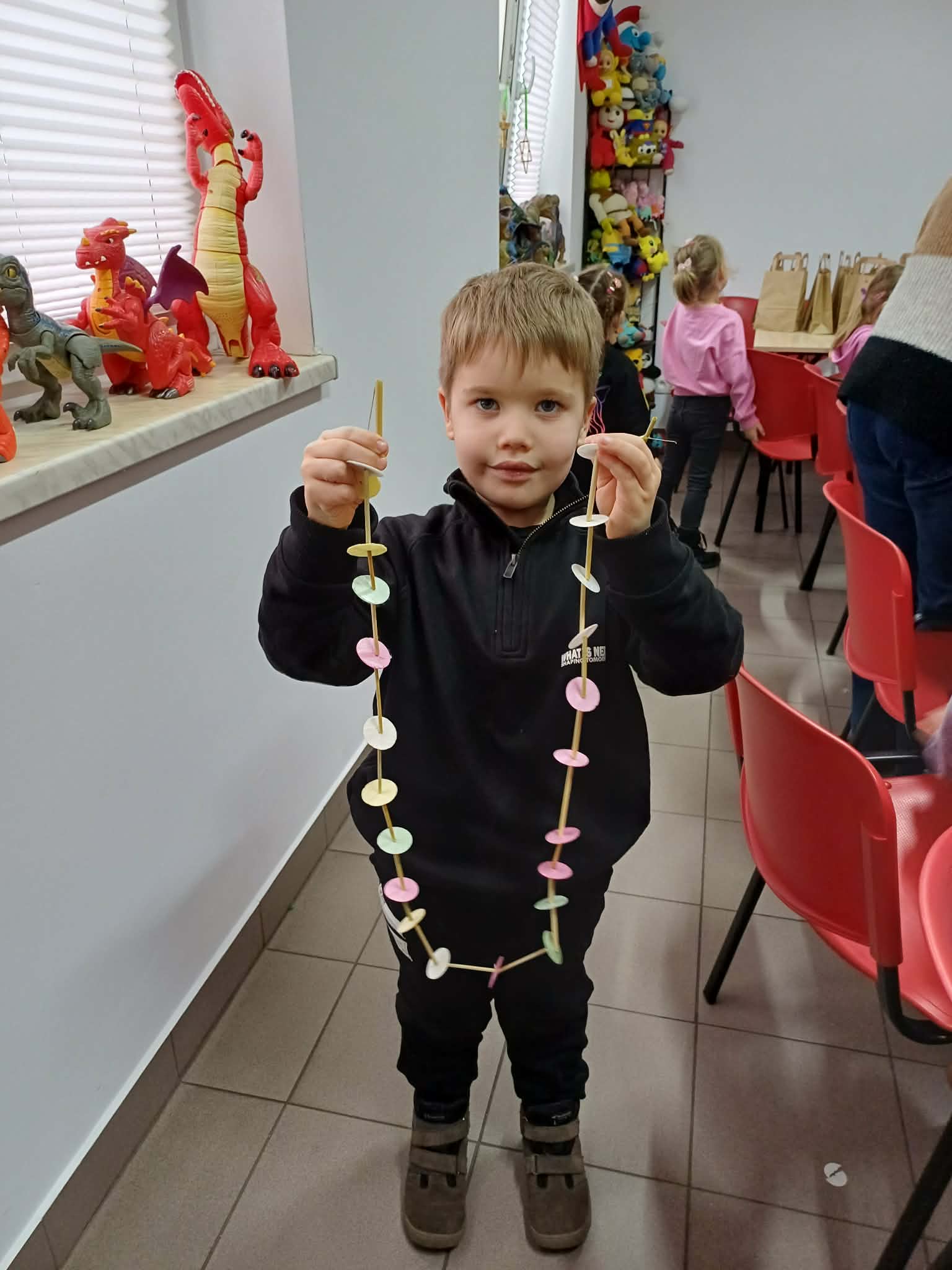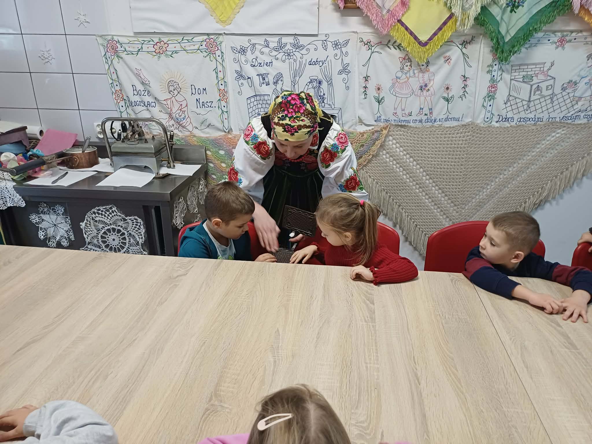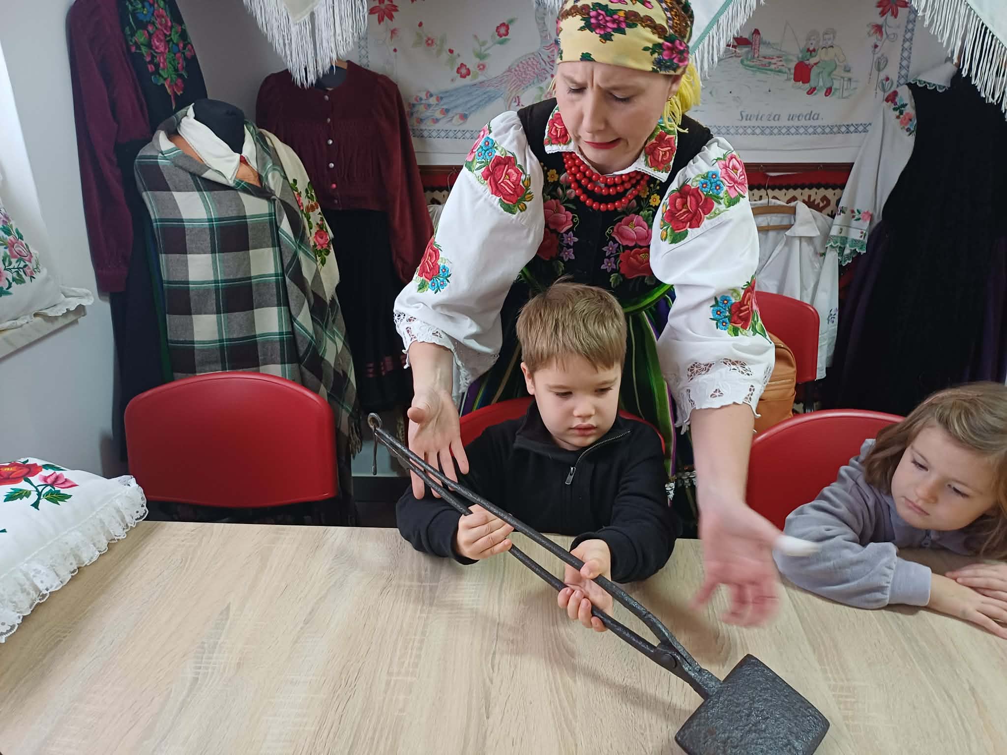 Dzisiaj odwiedziliśmy Zagrodę Bednarza w Bednarach. Wysłuchaliśmy opowieści o zwyczajach i tradycjach bożonarodzeniowych kultywowanych na Ziemi Łowickiej, zobaczyliśmy tradycyjny wyrób i wypiek opłatka wigilijnego na starej matrycy. Opłatek mogliśmy oczywiście spróbować. Później robiliśmy ozdoby świąteczne - bombkę z opłatka oraz łańcuch z opłatka i słomy. Wykonane ozdoby oczywiście będą wisiały na naszych domowych choinkach.