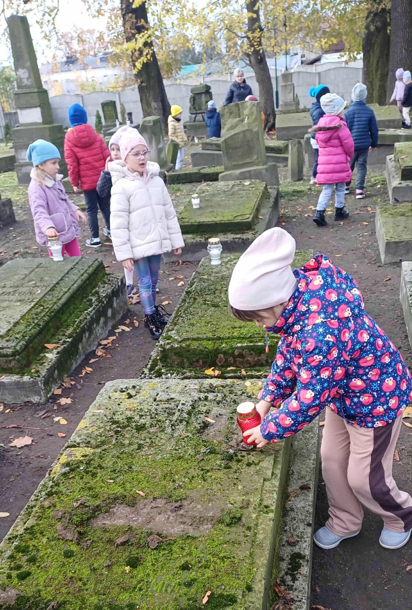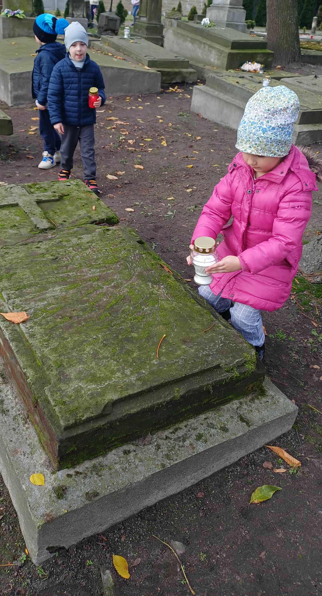 "Wisienki", dziś poszły na cmentarz św. Rocha, w ramach zbliżającego się święta Wszystkich Świętych. Zapalały znicze, poznały ciekawostki dotyczące najstarszego cmentarza w naszym mieście i uczyły się odpowiedniego zachowania miejscu wspomnień i zadumy.