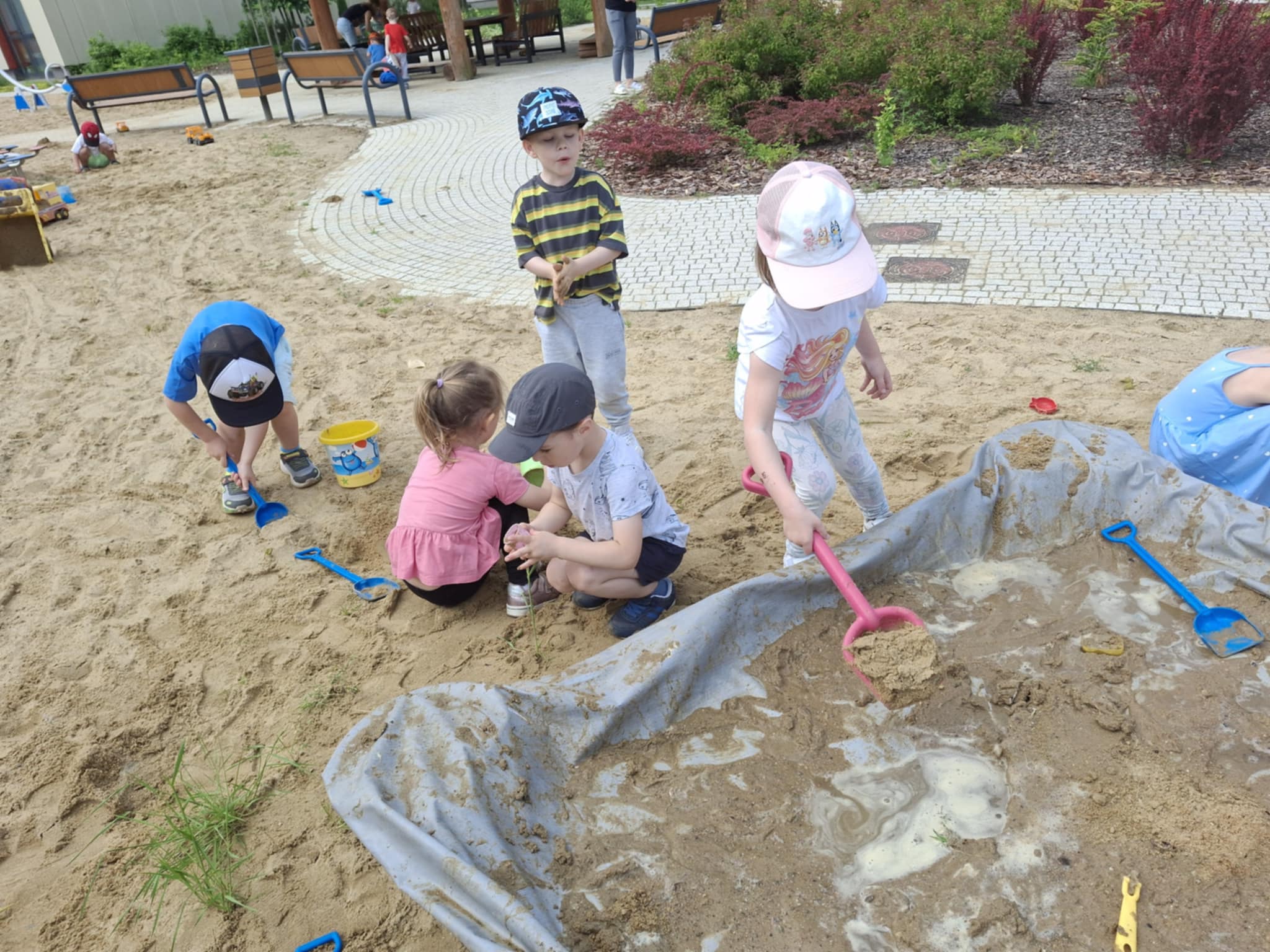 Nareszcie zrobiło się naprawdę ciepło i możemy spędzać więcej czasu na powietrzu. Dzisiaj było super - wczorajszy deszcz sprawił, że mogliśmy pobawić się błotkiem. Było super.