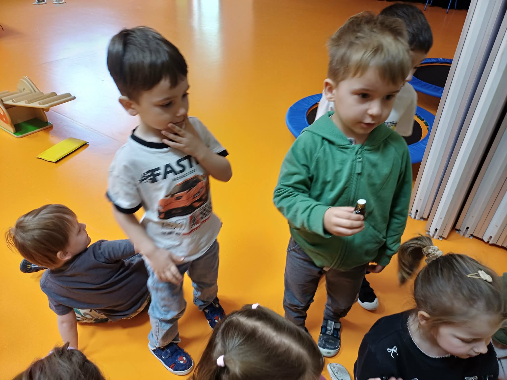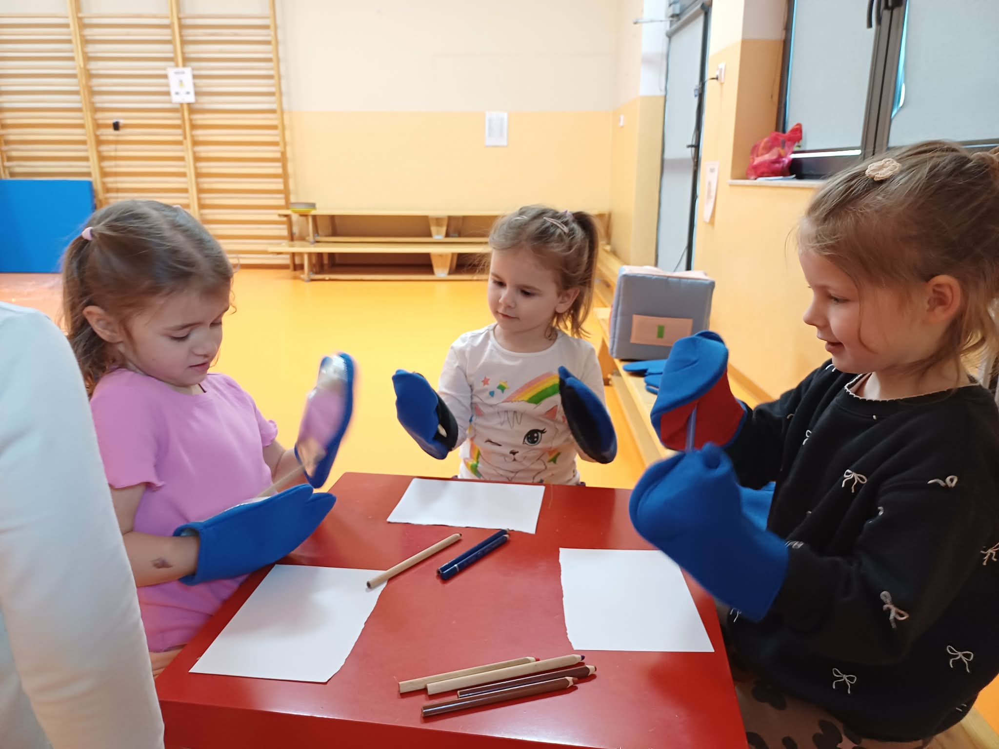 Dzisiaj w ramach obchodów Dni Świadomości Autyzmu braliśmy udział w zabawach sensorycznych. Dotykaliśmy, słuchaliśmy, wąchaliśmy - było bardzo ciekawie.
