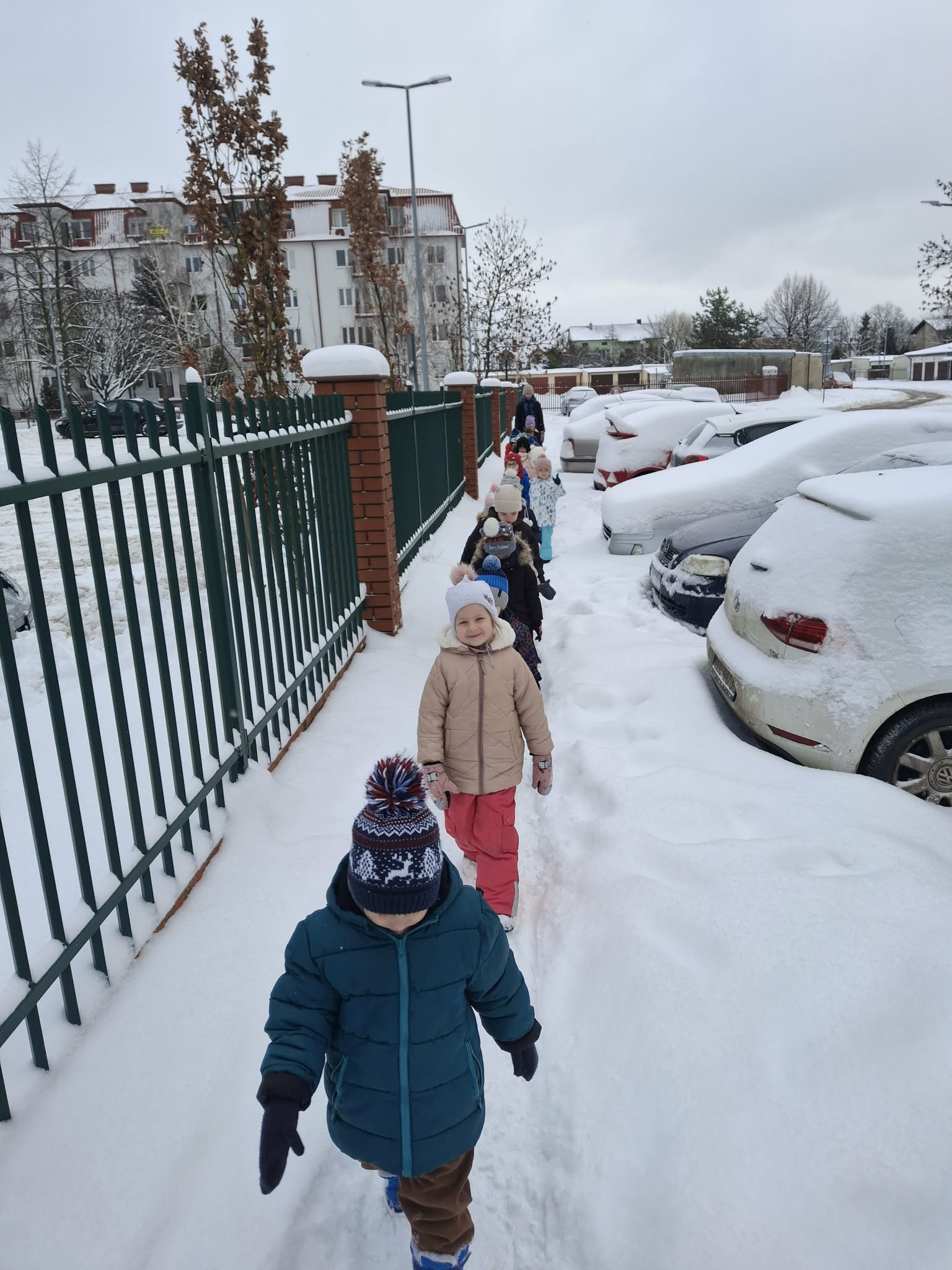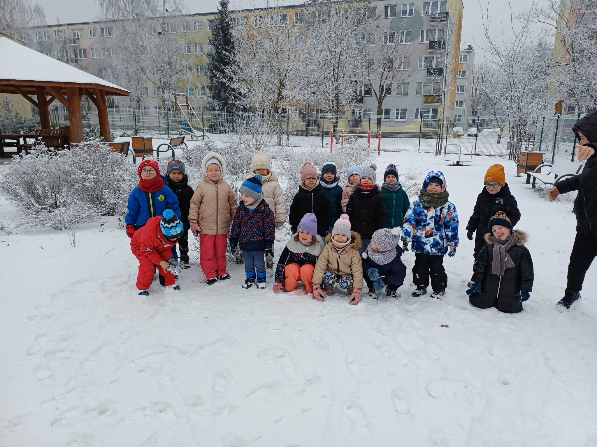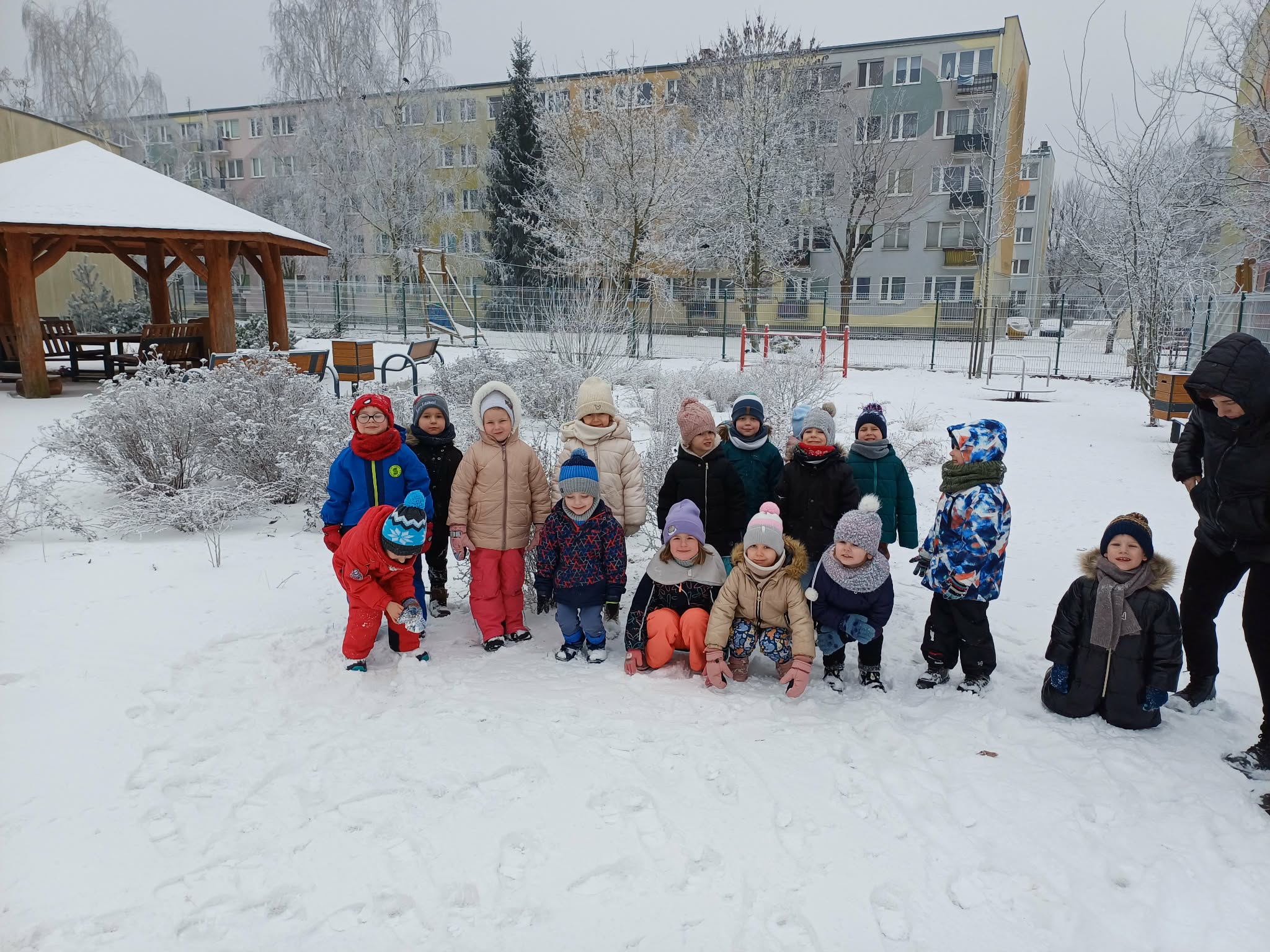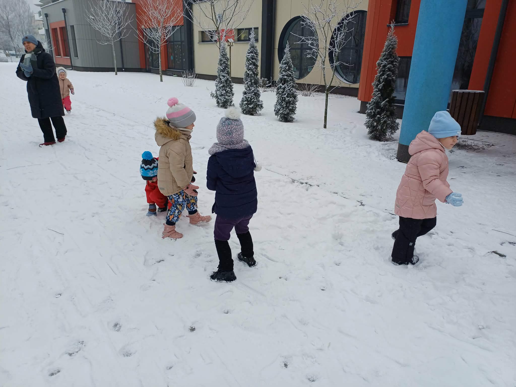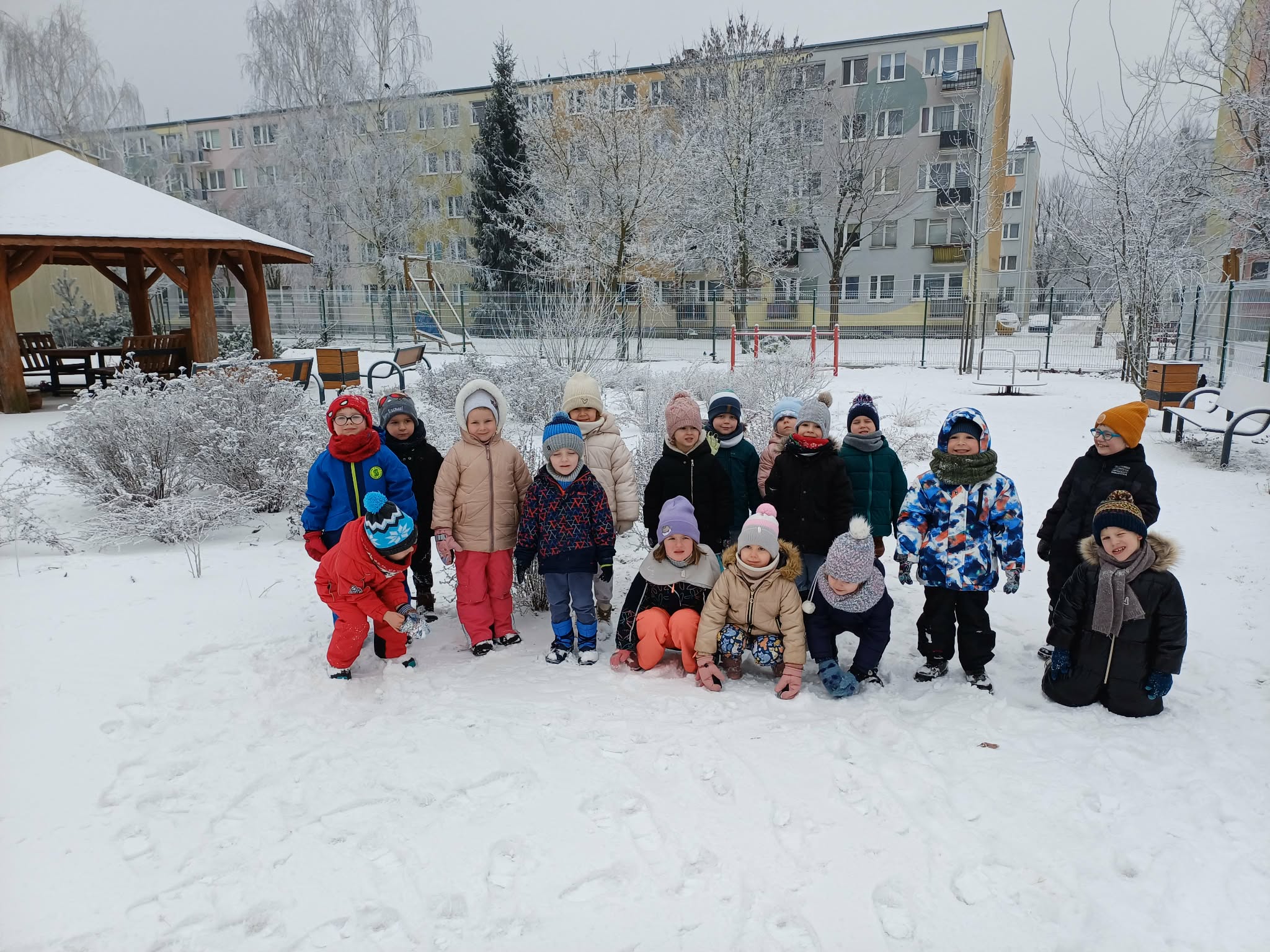 W tym roku nareszcie przyszła do nas zima - od razu popędziliśmy na dwór. Zabawa była bardzo udana, spacer również. Niestety nie mogliśmy ulepić bałwana bo śnieg był za suchy. Ale bitwa śnieżna udała się i sami wyglądaliśmy jak bałwanki. Chodzenie po śniegu to niezła gimnastyka.