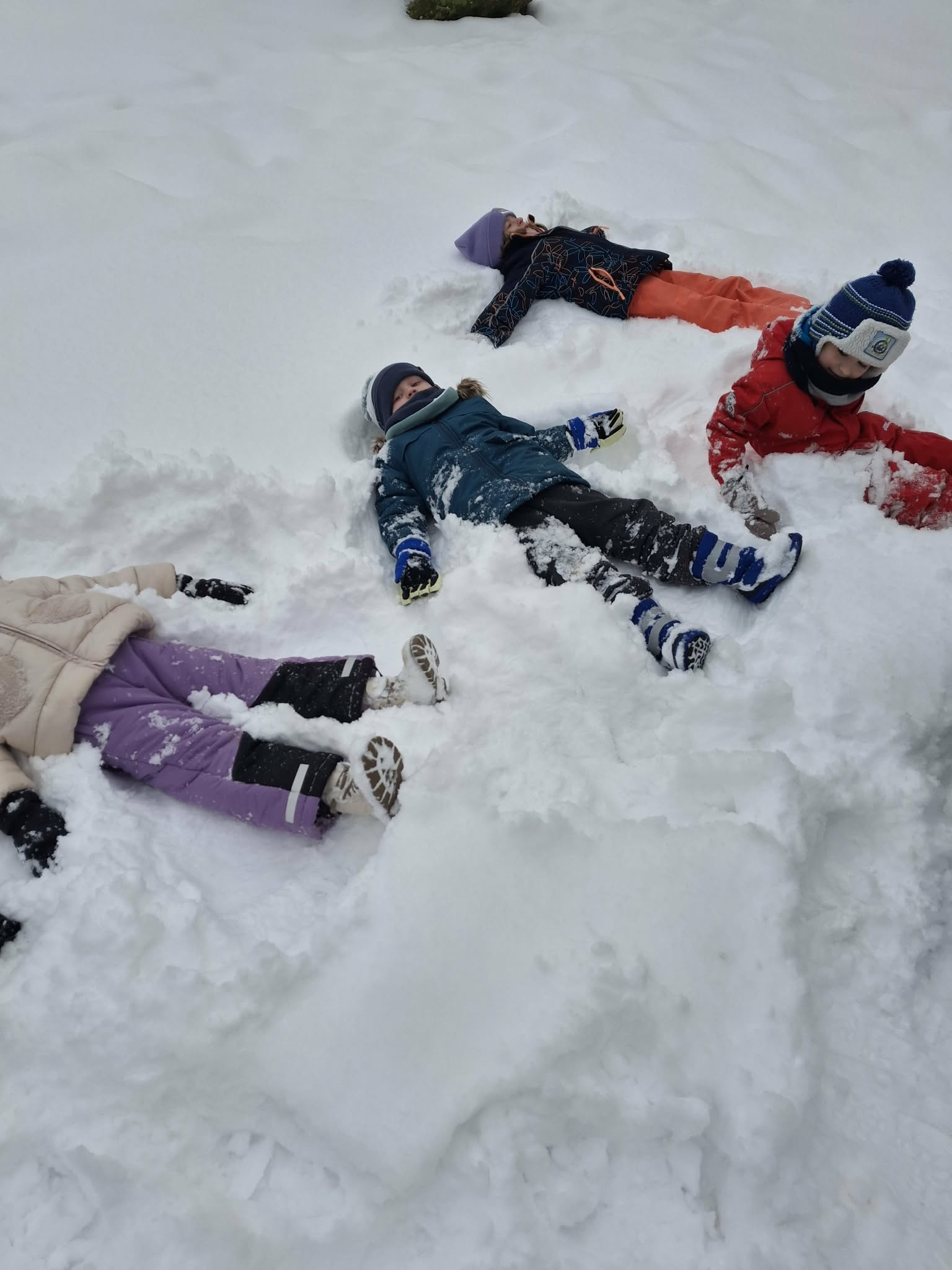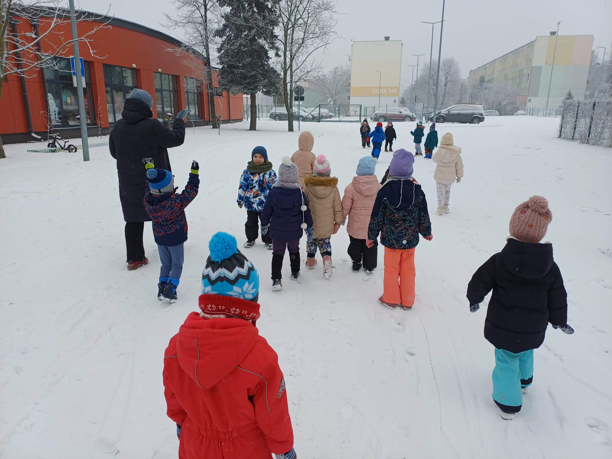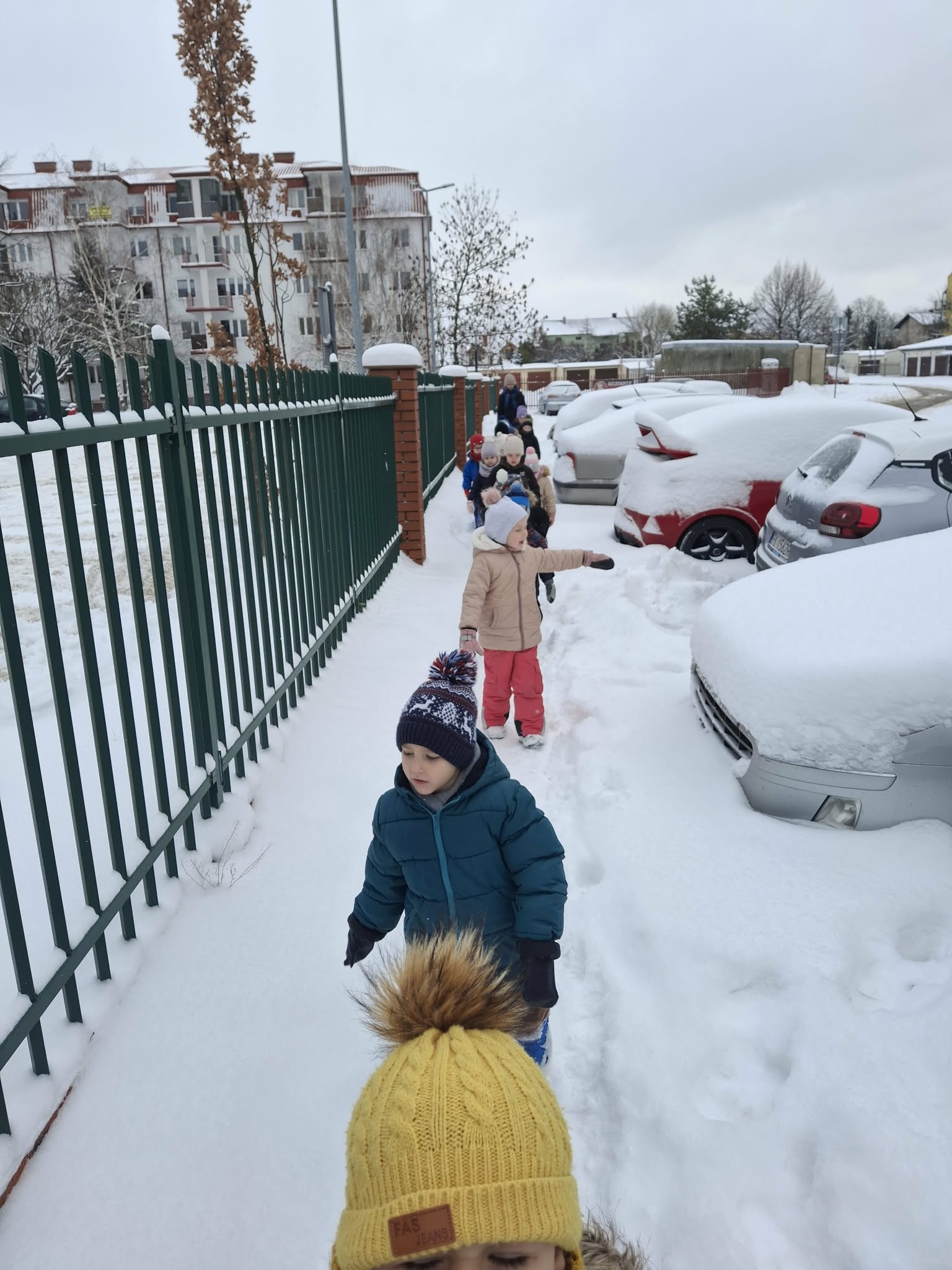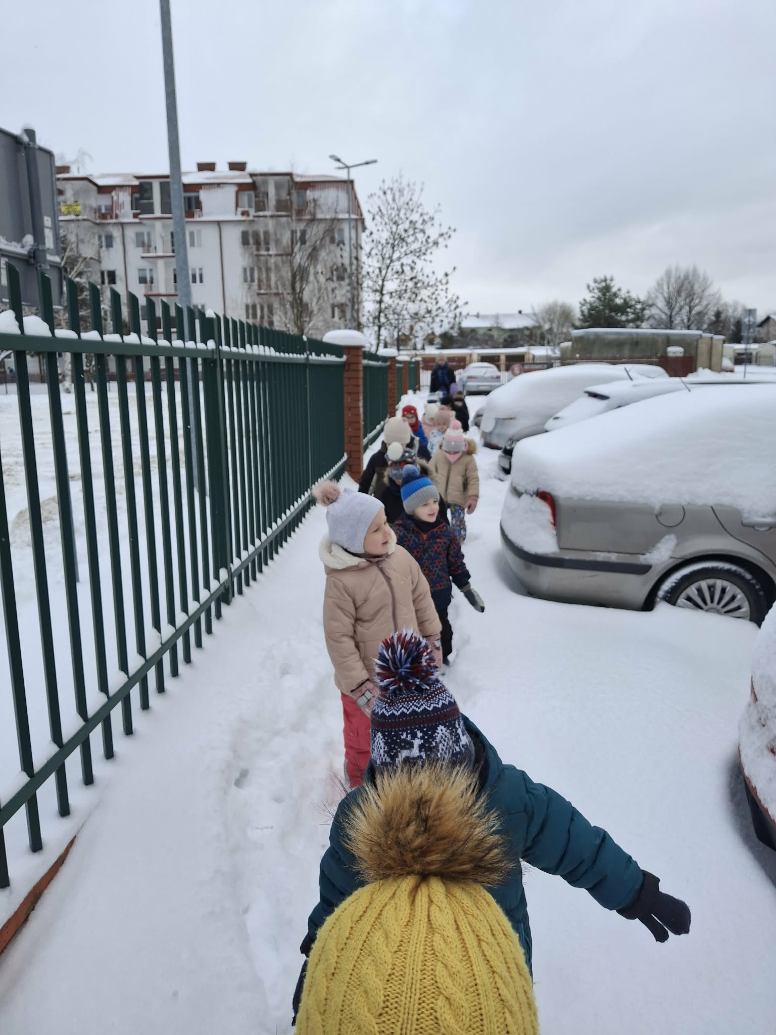 W tym roku nareszcie przyszła do nas zima - od razu popędziliśmy na dwór. Zabawa była bardzo udana, spacer również. Niestety nie mogliśmy ulepić bałwana bo śnieg był za suchy. Ale bitwa śnieżna udała się i sami wyglądaliśmy jak bałwanki. Chodzenie po śniegu to niezła gimnastyka.